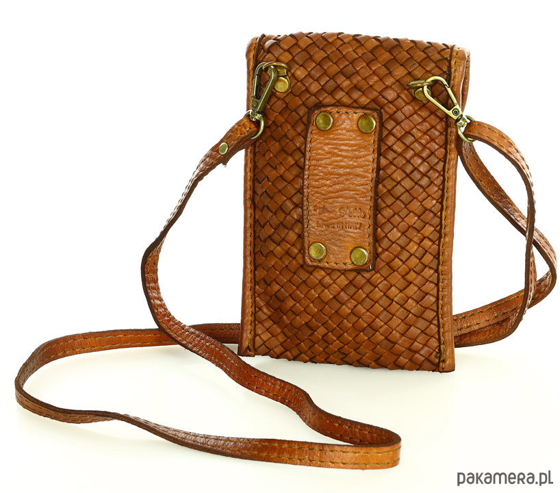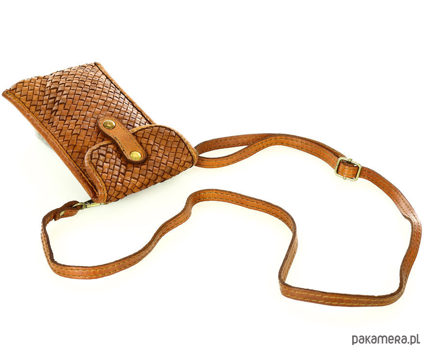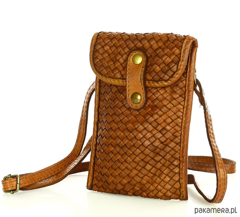 Torebka skórzana na telefon etui smartfon - brąz camel