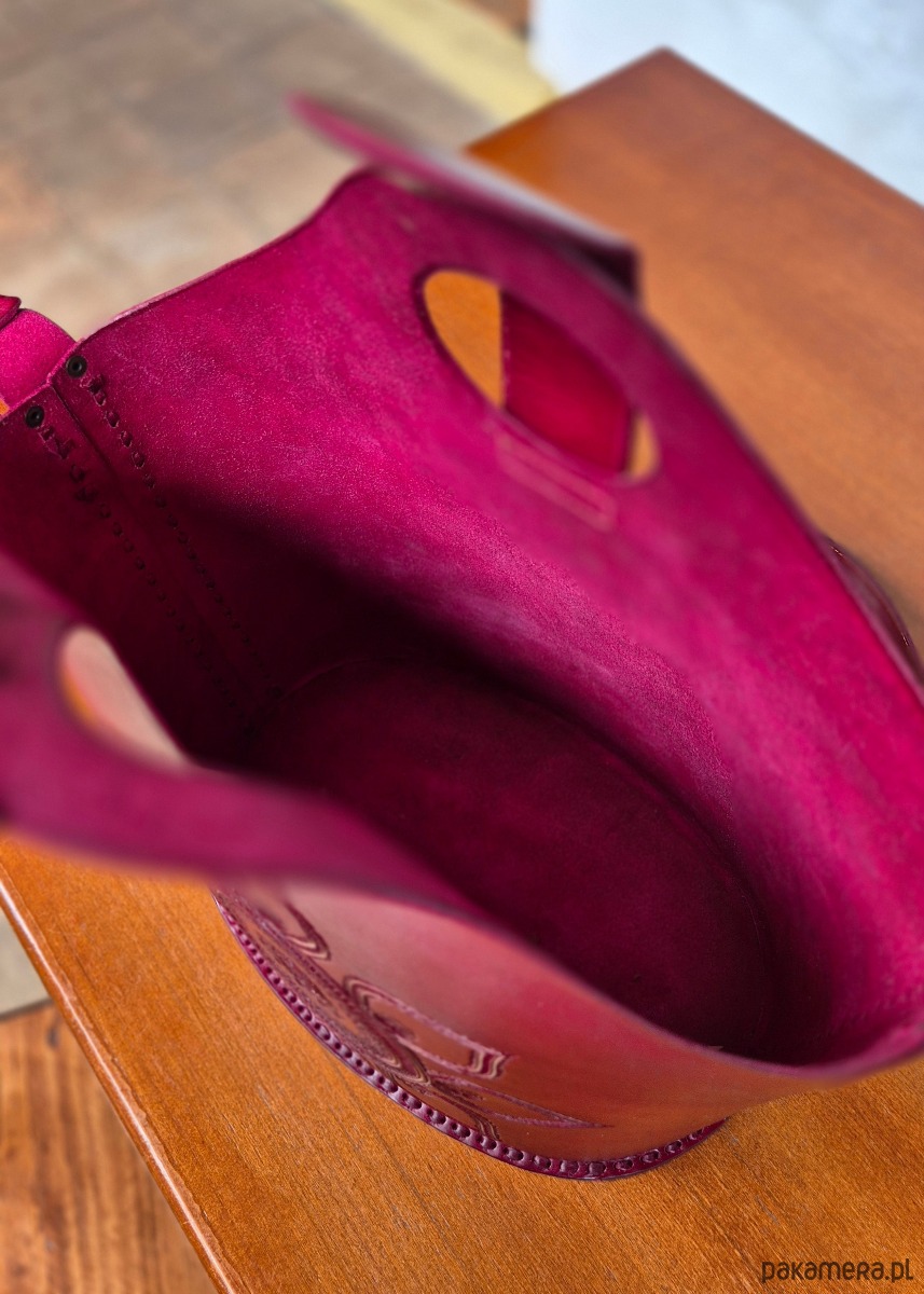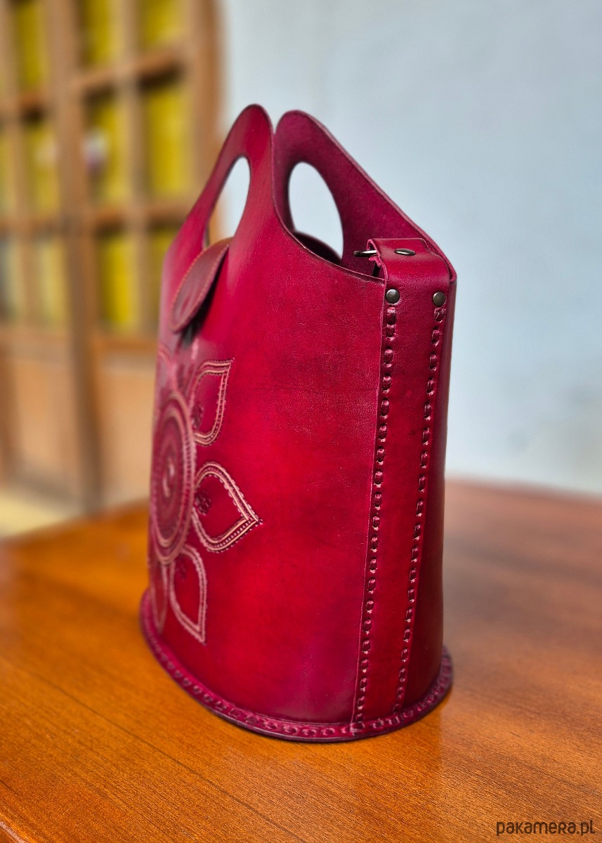 Torebka skórzana Naay Wiśniowa a4 ręcznie robiona z grubej skóry unikatowa