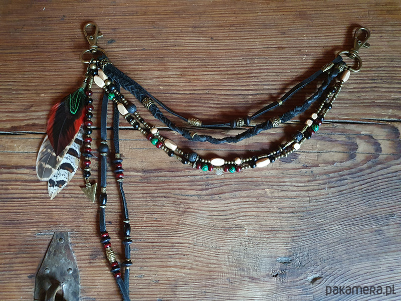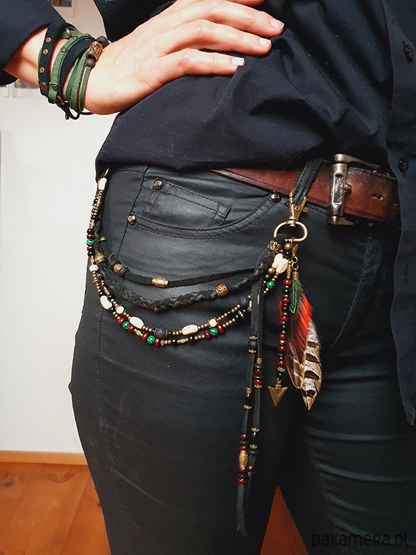 biżuteria na pas z koralików i piór naturalnych