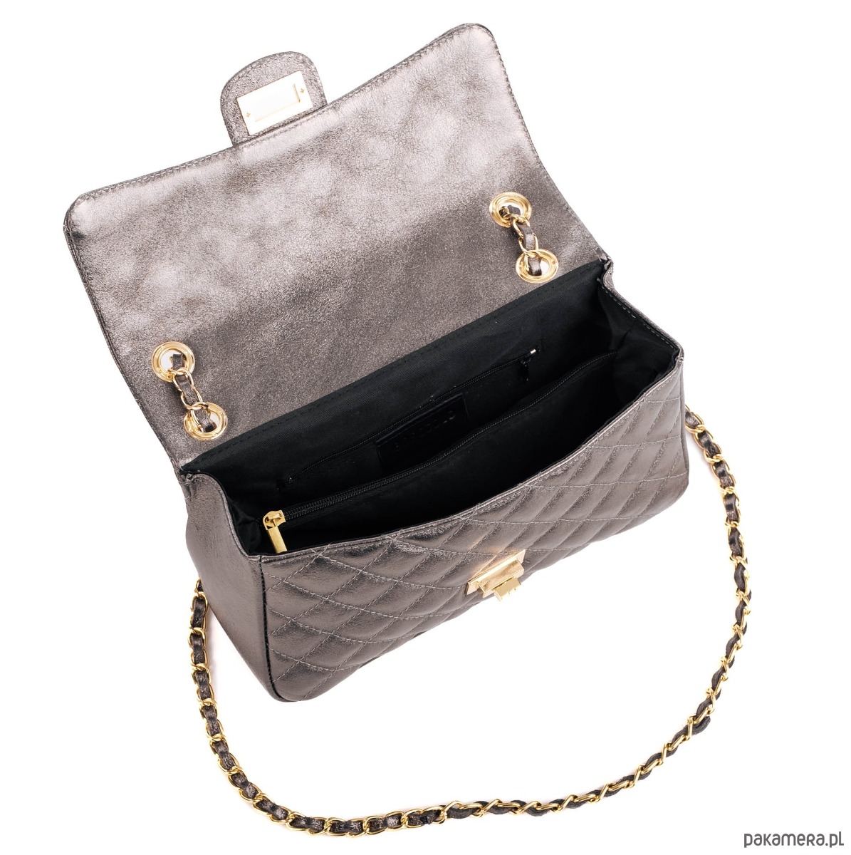 Elegancka torebka ze skóry naturalnej, pikowanej.