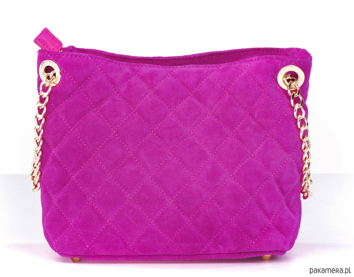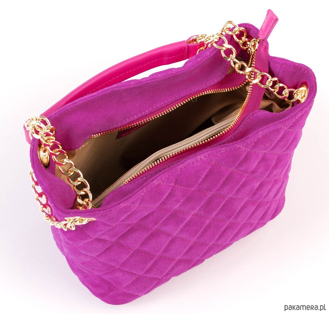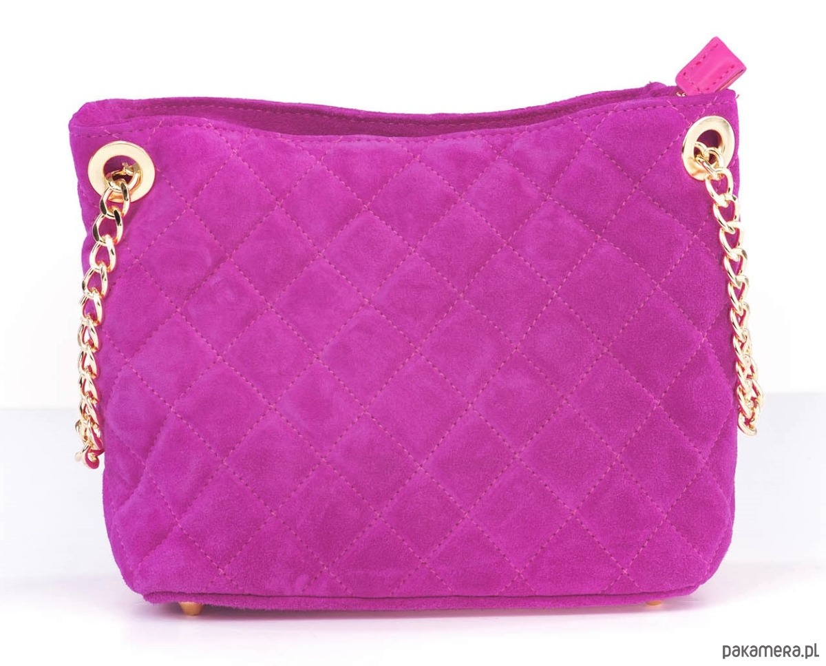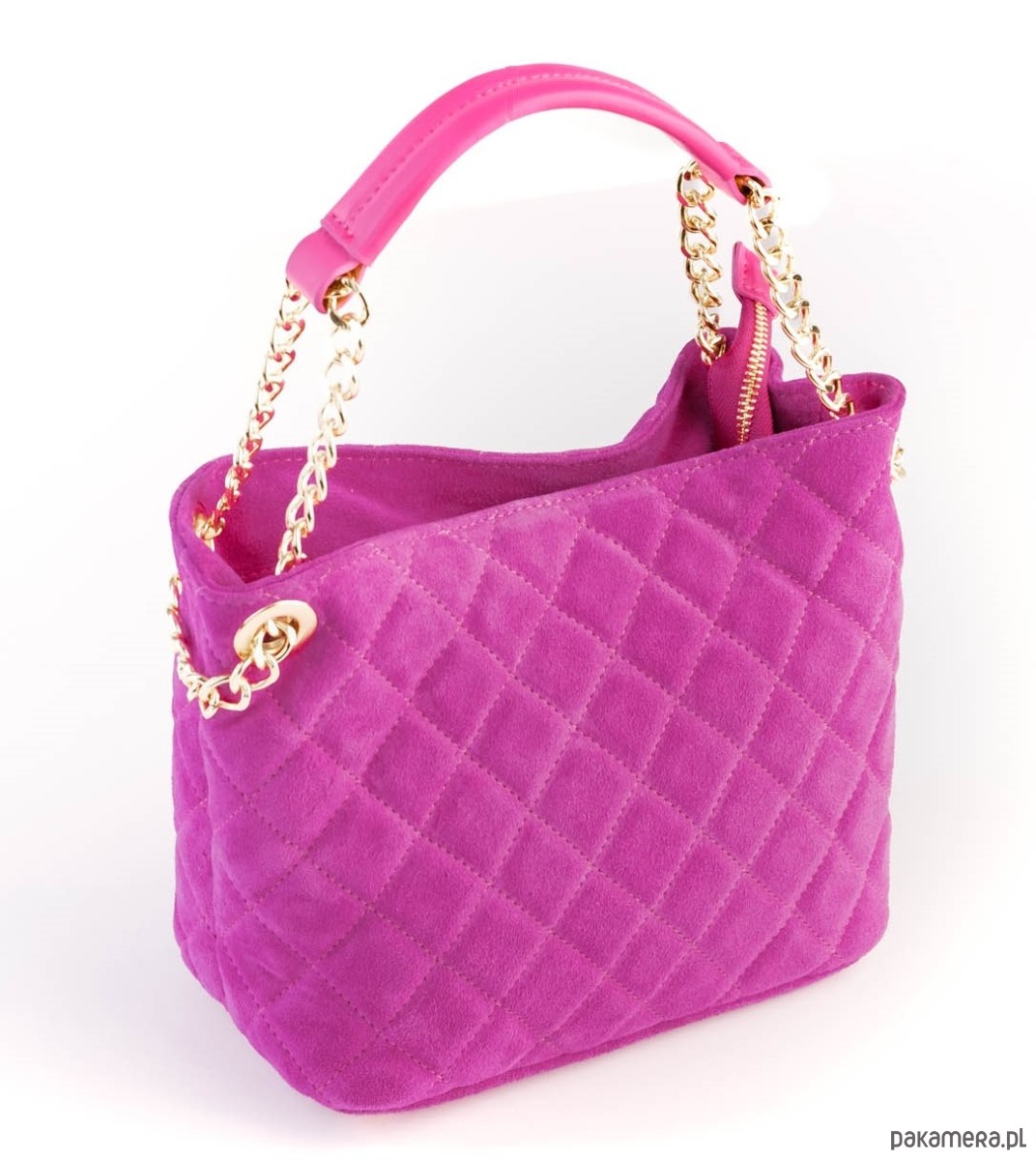 Elegancka torba ze skóry naturalnej, pikowany zamsz.