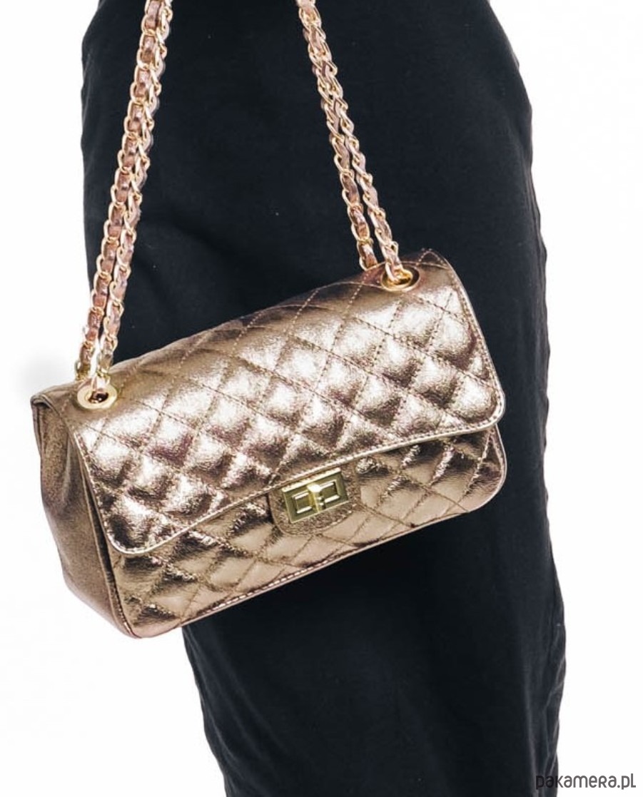 Torebka skórzana pikowana - złota (6930)