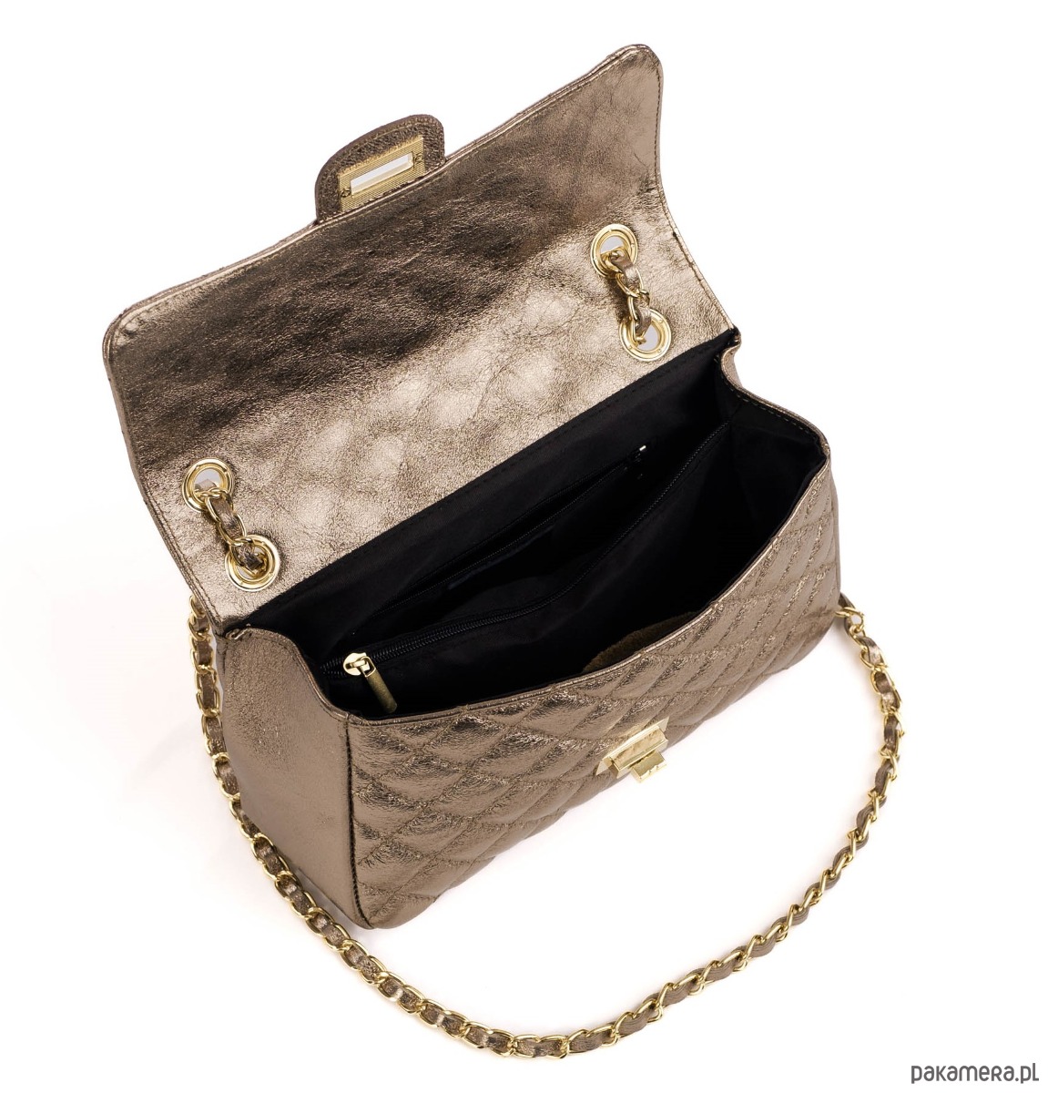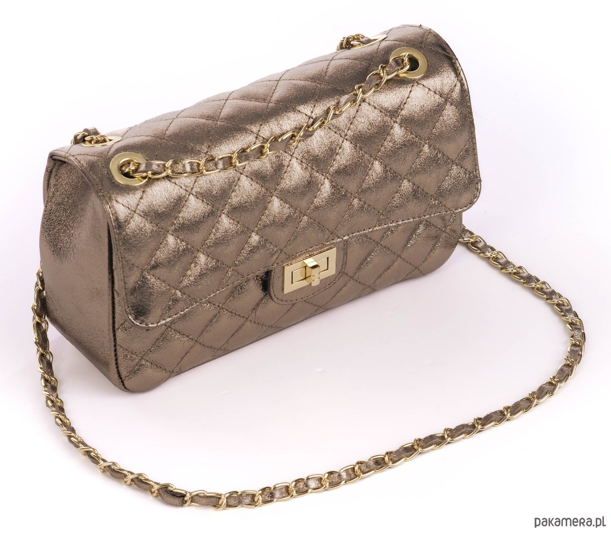 Elegancka torebka ze skóry naturalnej, pikowanej.