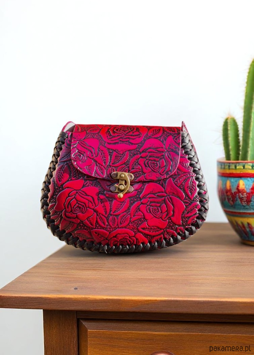 Skórzana torebka, ręcznie wykonana w Meksyku z grubej skóry naturalnej. Jej unikalny design zdobią wzory z motywem kwiatowym, które nadają jej niepowtarzalny styl i charakter. Każdy detal torebki został starannie wykonany przez doświadczonych rzemieślników, co sprawia, że jest ona nie tylko pięknym, ale także trwałym dodatkiem do garderoby. Wykorzystanie skóry naturalnej gwarantuje, że torebka będzie służyć przez wiele lat, zachowując swój wyjątkowy wygląd. Jej elegancki design sprawia, że doskonale sprawdzi się jako dodatek zarówno do codziennych stylizacji, jak i na wyjątkowe okazje. Ta torebka to nie tylko praktyczny element garderoby, ale również wyraz artystycznego kunsztu meksykańskich rzemieślników, którzy tworząc ją, przelewają w nią swoją pasję i tradycje.