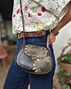 Skóra użyta to wykonania torebki jest ręcznie garbowana oraz ręcznie malowana, a wzory wykonane są za pomocą odpowiednich stempli.