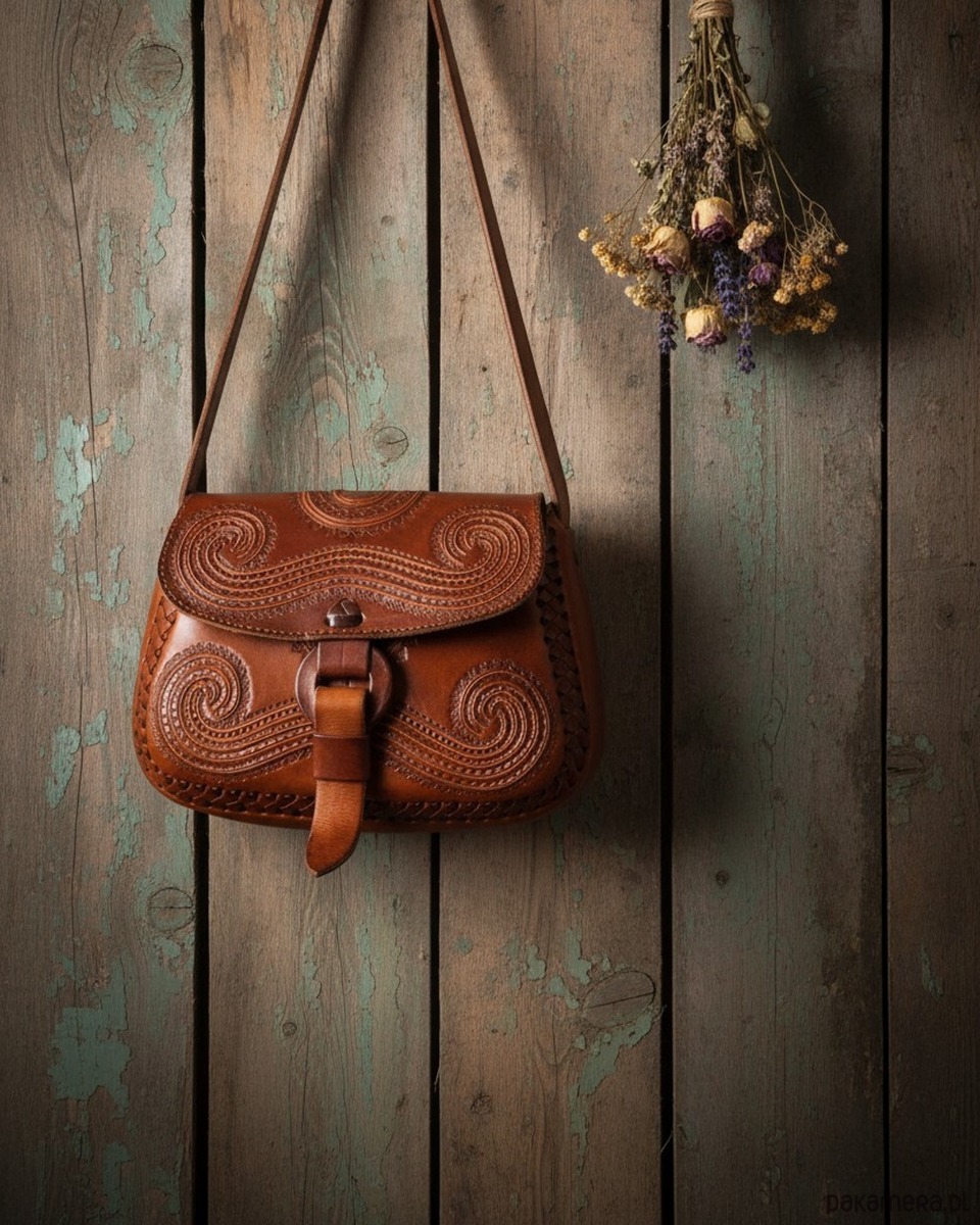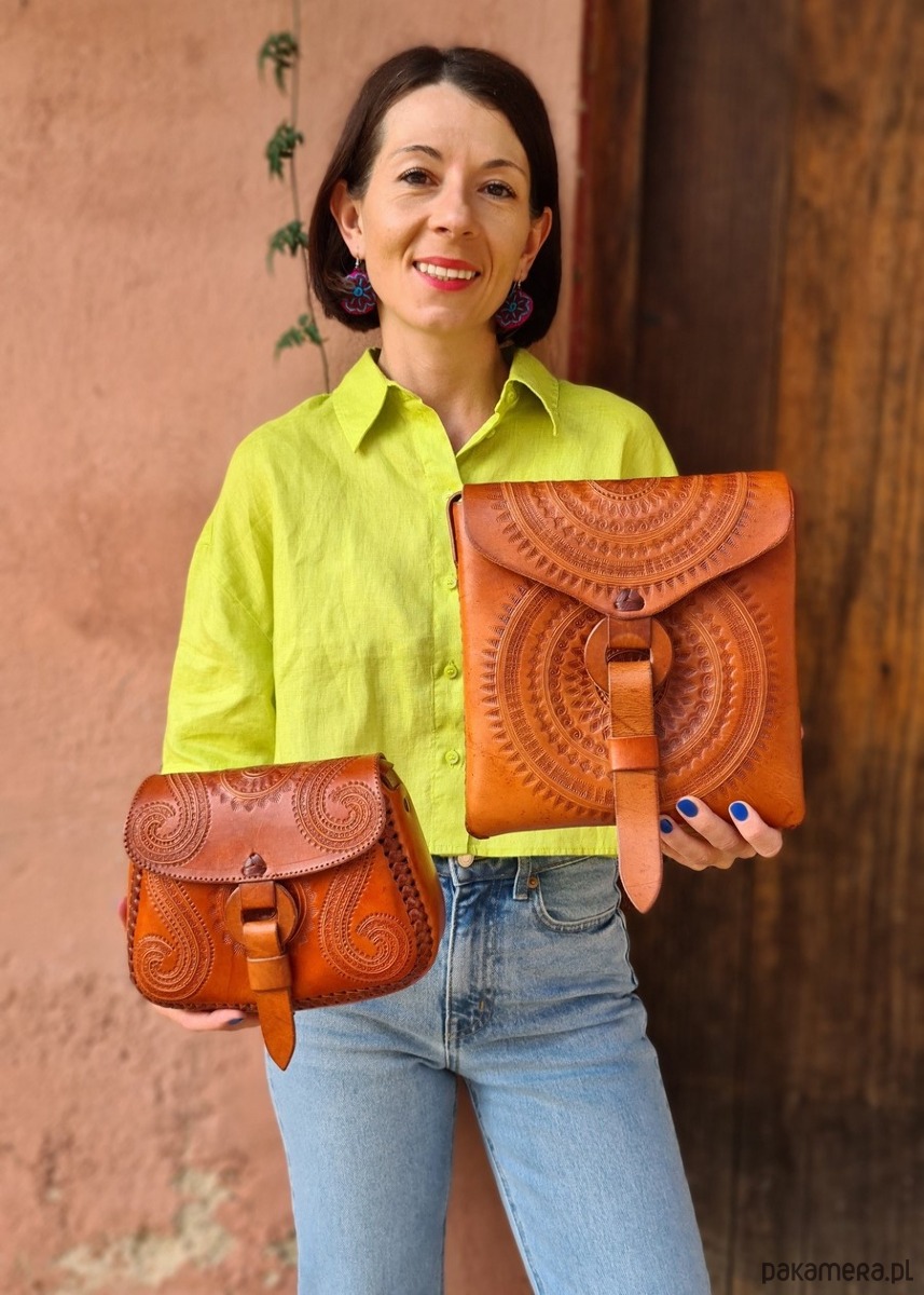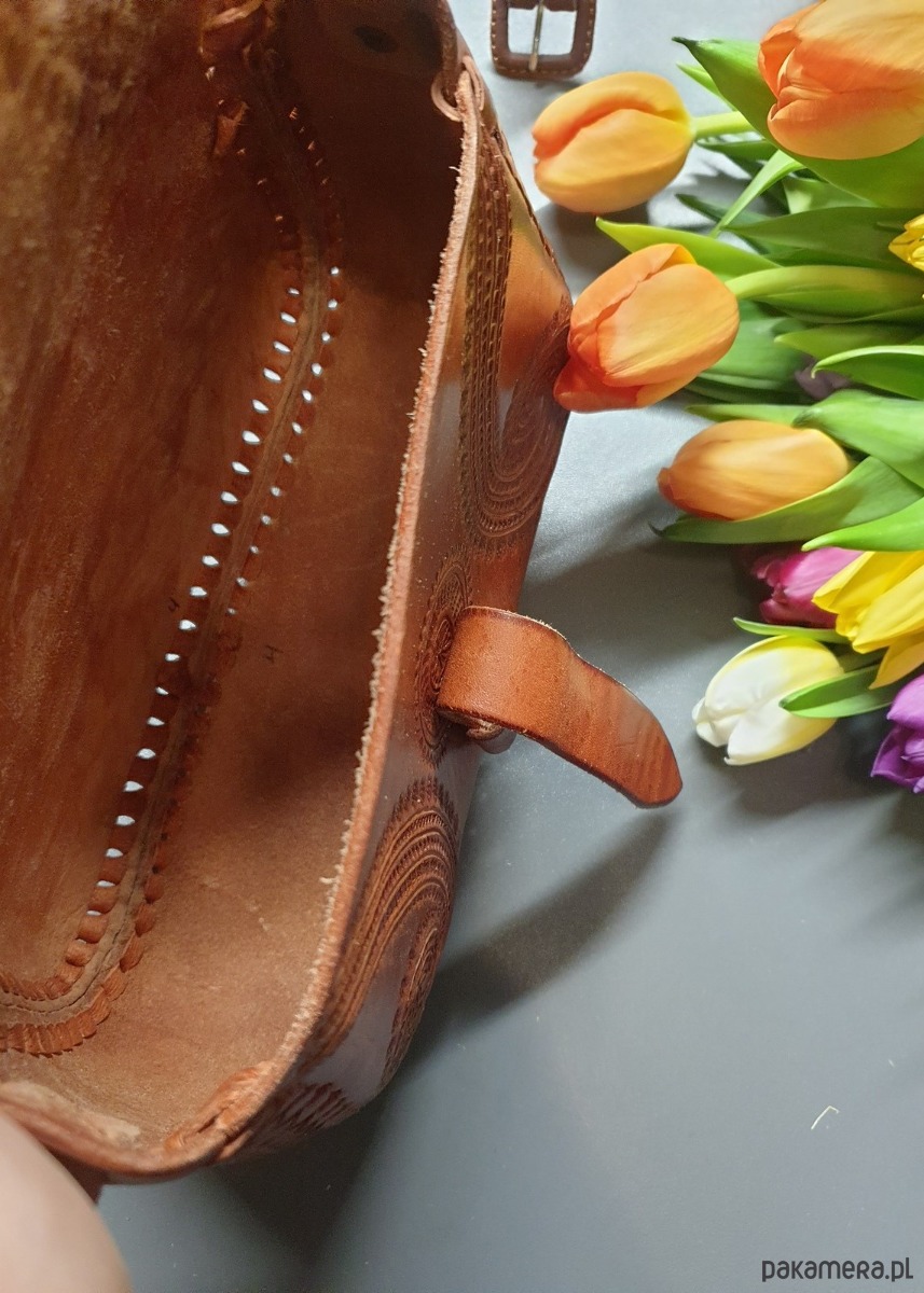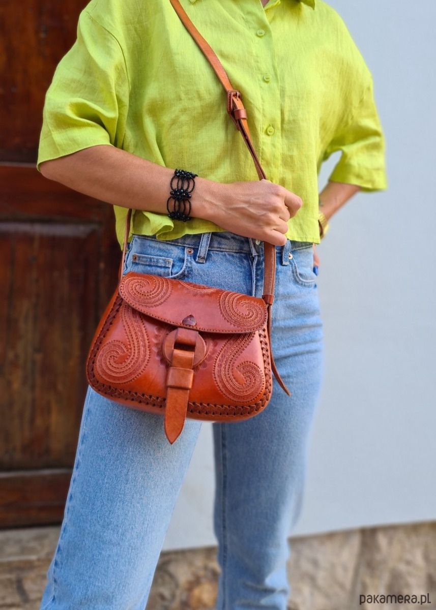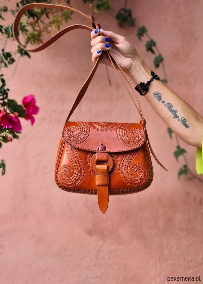 Torebka skórzana ręcznie robiona góralska Abril wzory zakopane