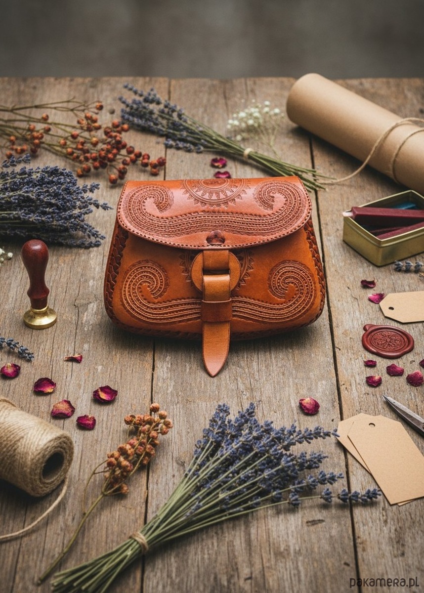 Torebka skórzana ręcznie robiona góralska Abril wzory zakopane