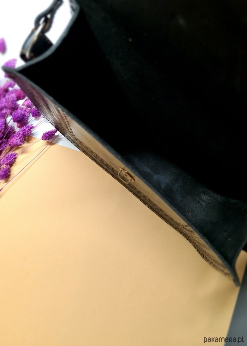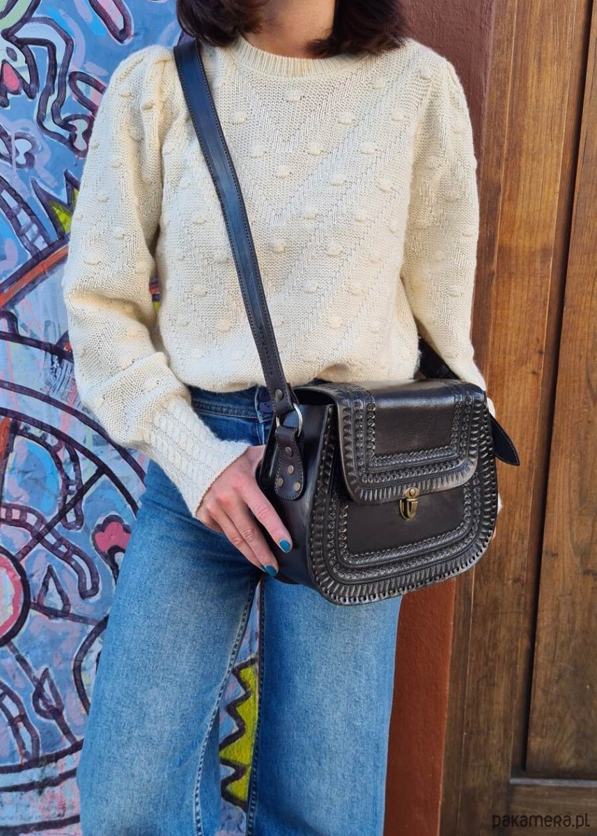 Torebka skórzana ręcznie robiona góralska Alsa Czarna duża skóra naturalna