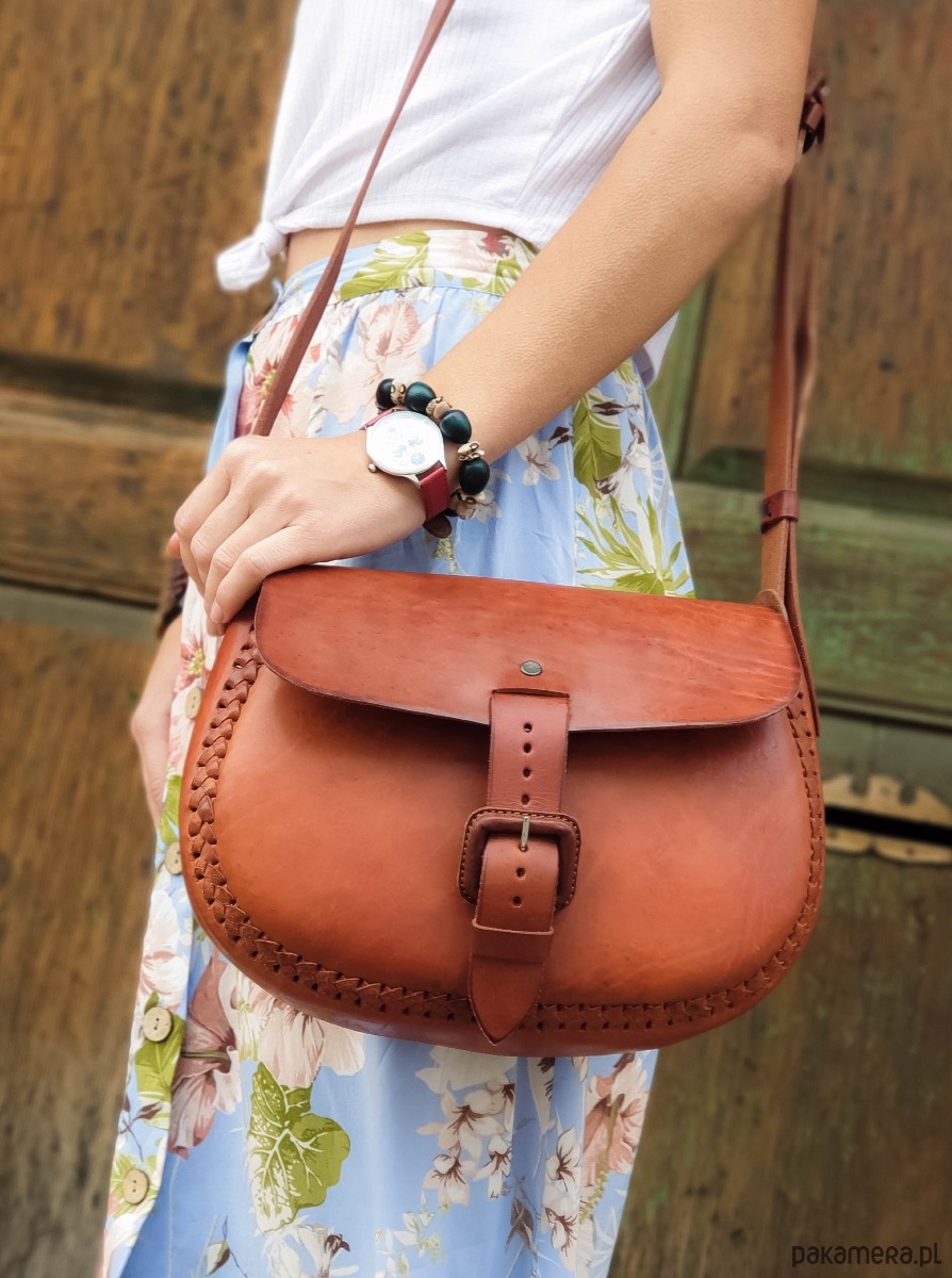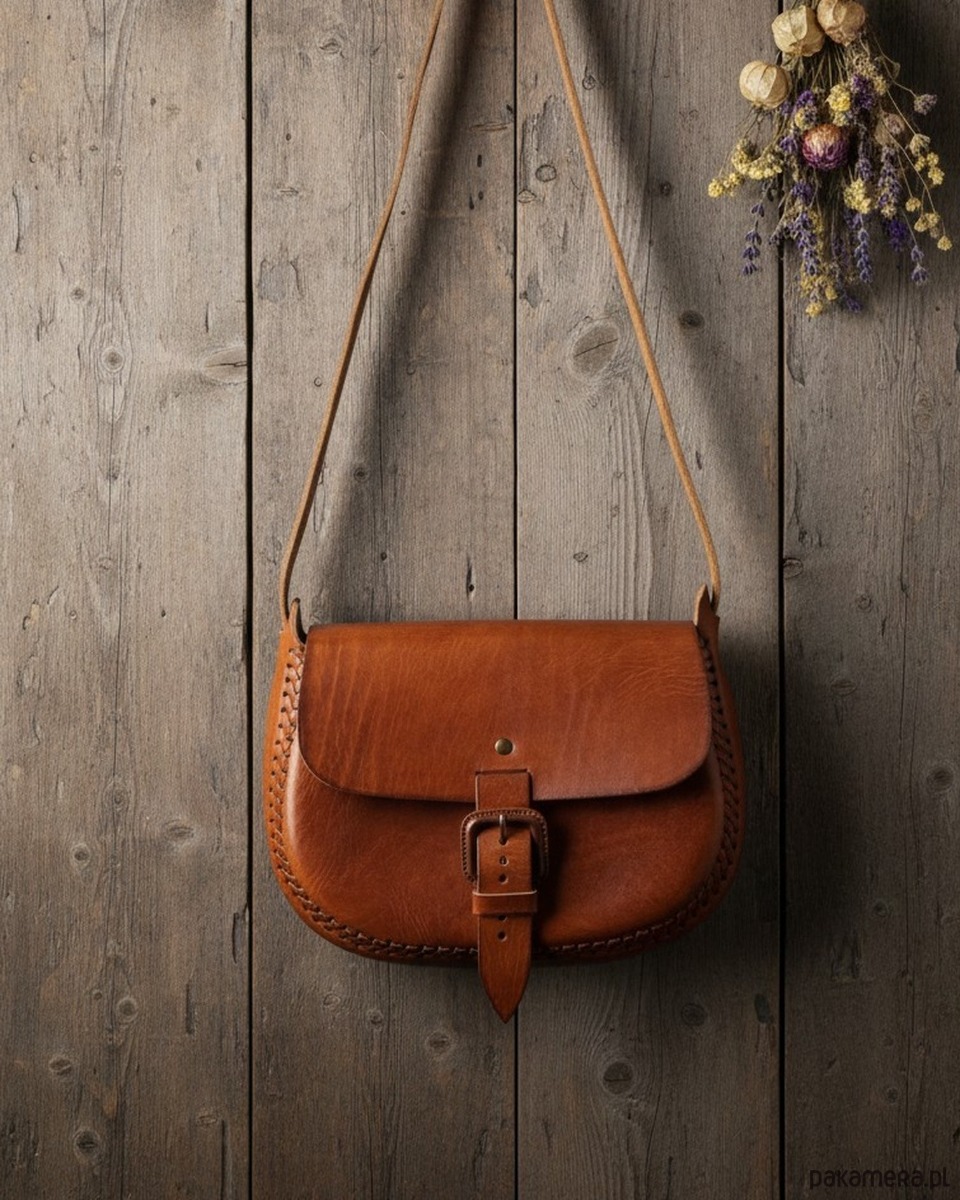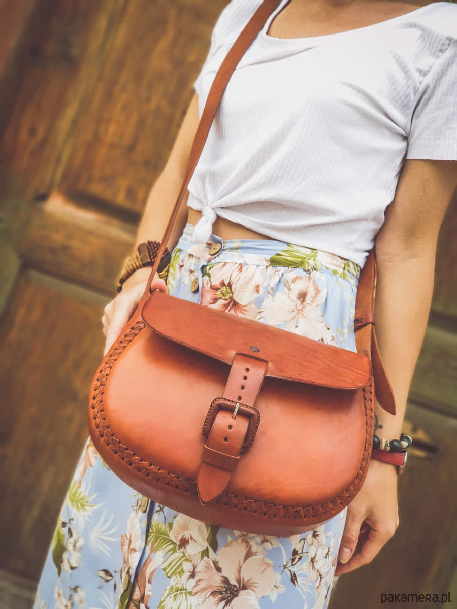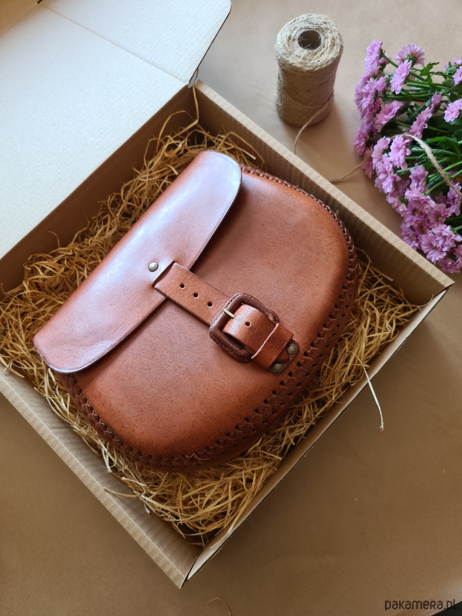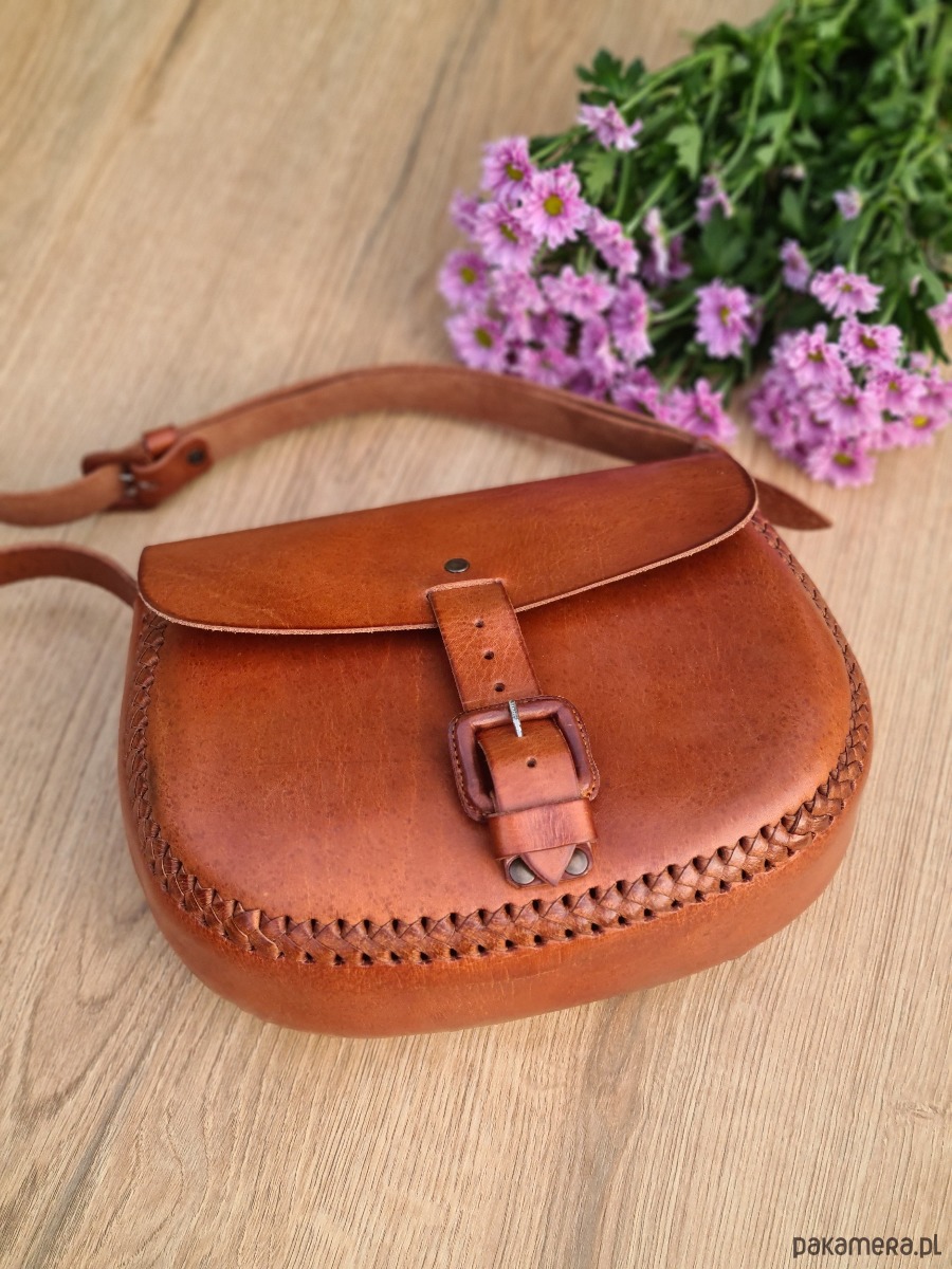 Torebka skórzana ręcznie robiona góralska Elena na ramię skóra