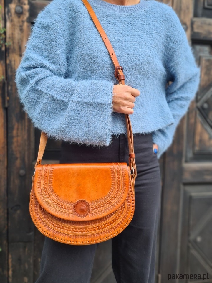 Torebka skórzana ręcznie robiona góralska listonoszka Tonala wzory