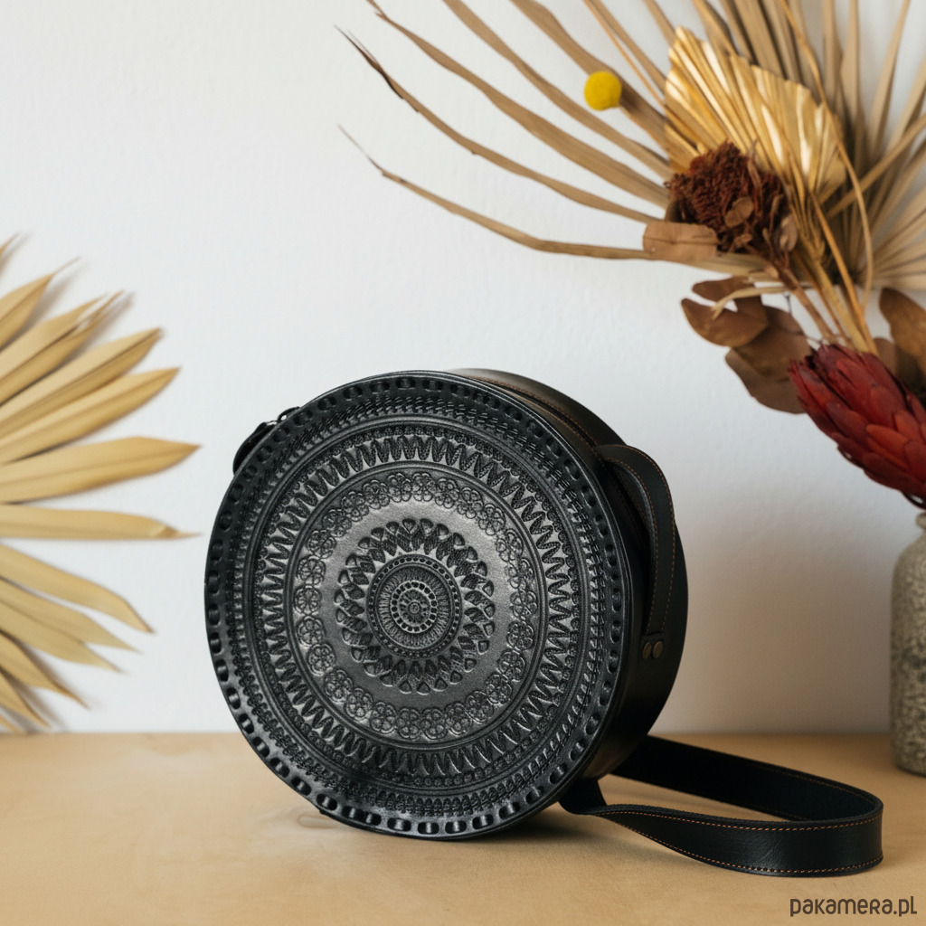 okrągła torebka ze skóry