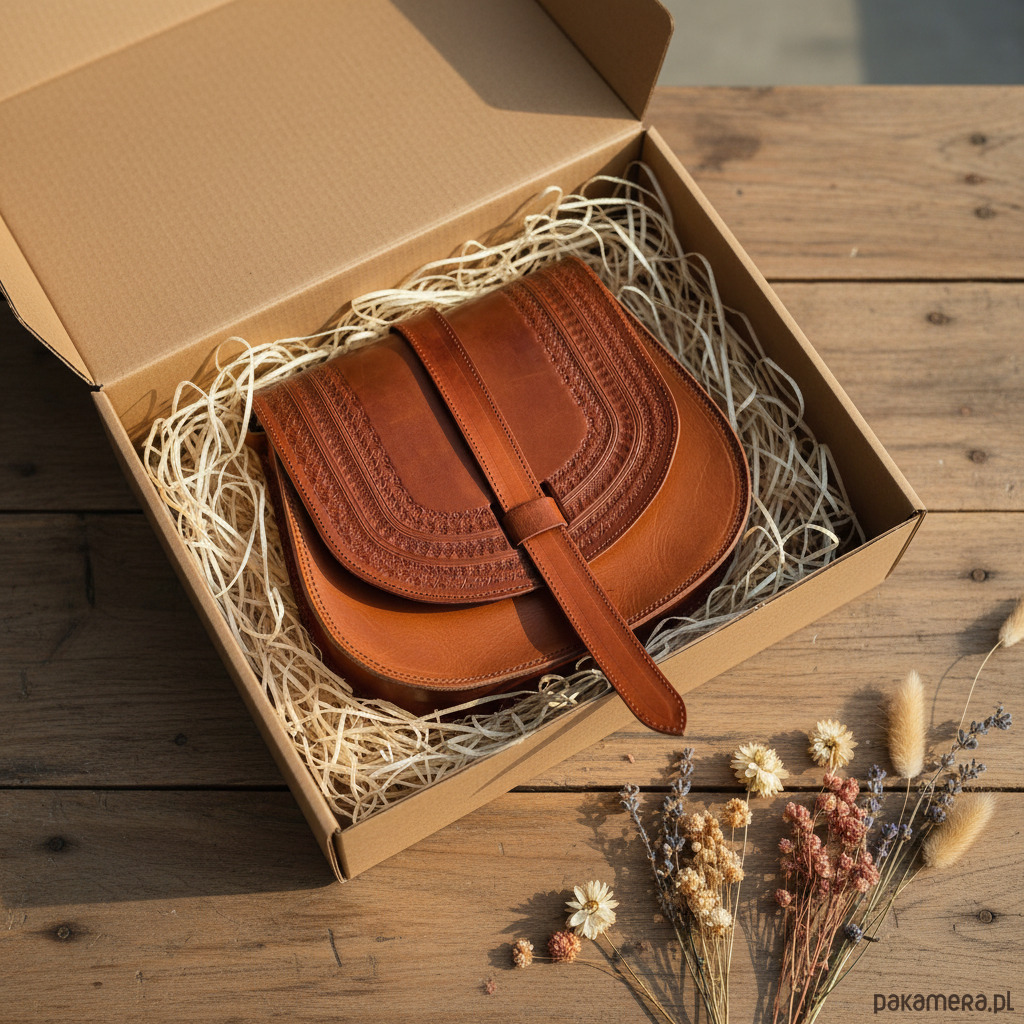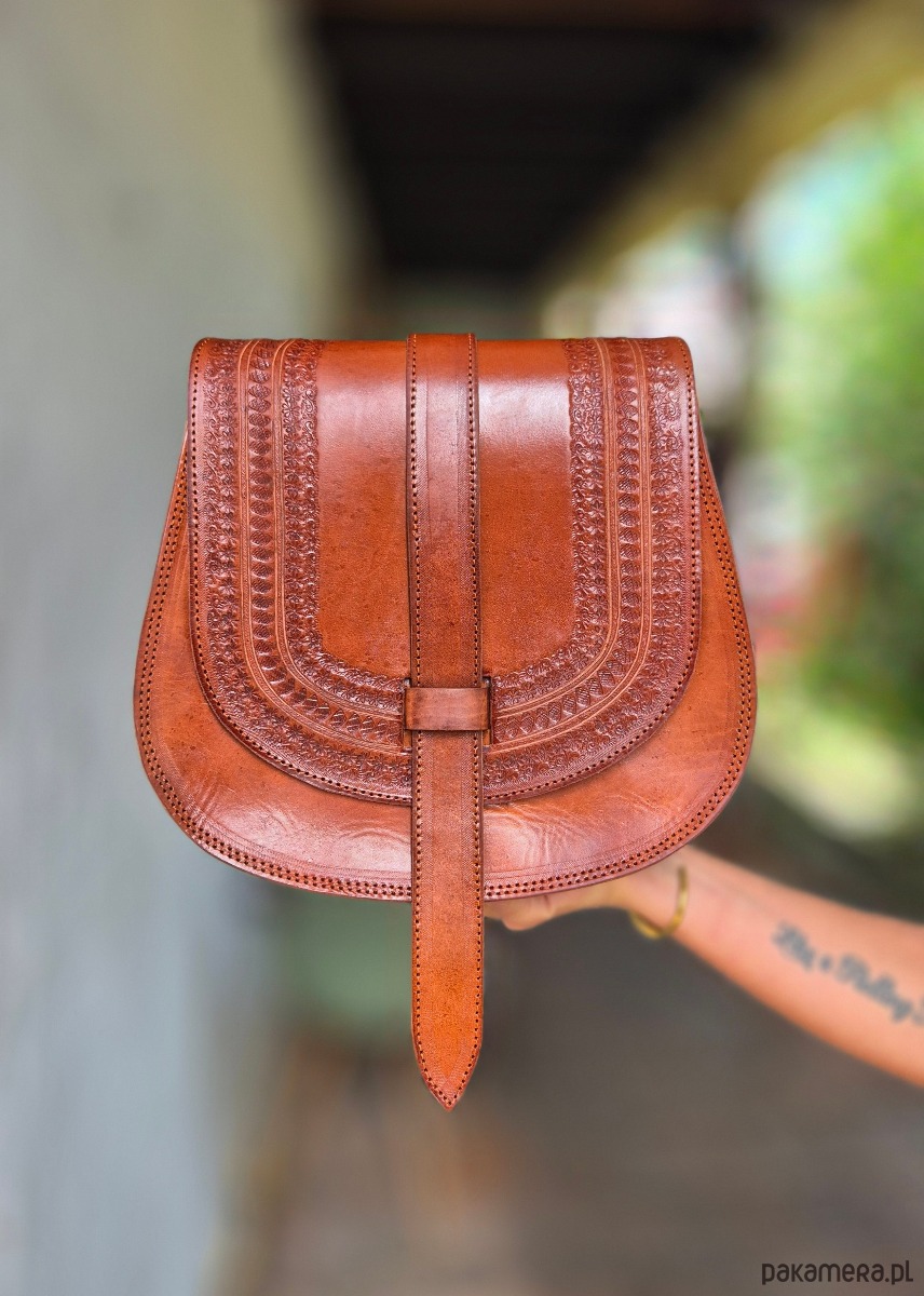 Torebka skórzana ręcznie robiona góralska Rosa na ramię wzory