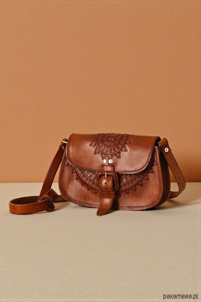 Nieduża torebka damska, ręcznie wykonana ze skóry naturalnej, pochodząca z Meksyku, z warsztatu braci Cruz. Torebka ma klasyczny, elegancki kształt, z delikatnym okrągłym wzorem, który zapewnia jej unikalność. Długi regulowany pasek ułatwia dopasowanie jej do Twoich potrzeb. Mimo, że wydaje się niepozorna, w rzeczywistości jest bardzo pojemna - jesteśmy przekonani, że będzie Ci często towarzyszyła w podboju miasta i nie tylko.