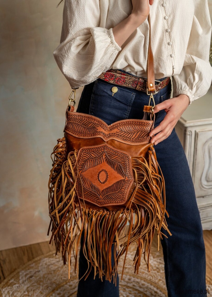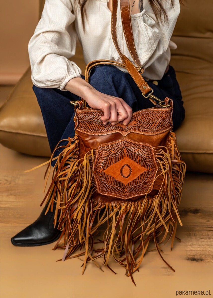 Torebka skórzana ręcznie robiona z frędzlami Vellore