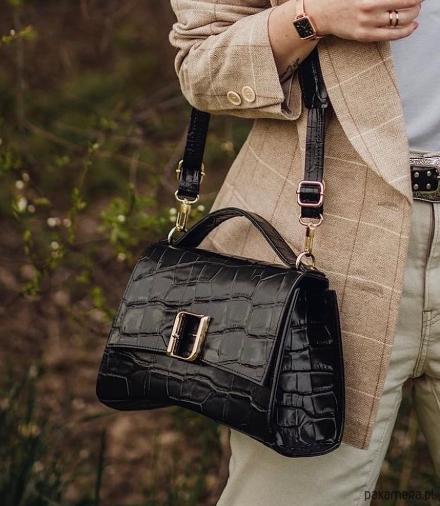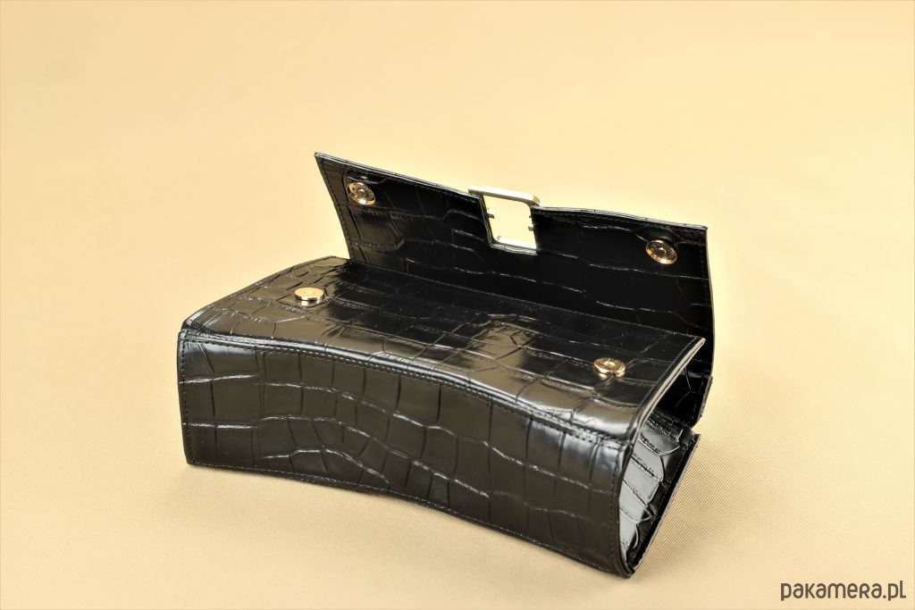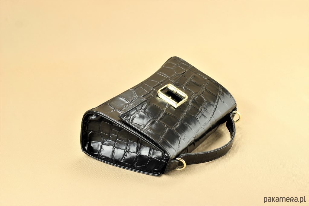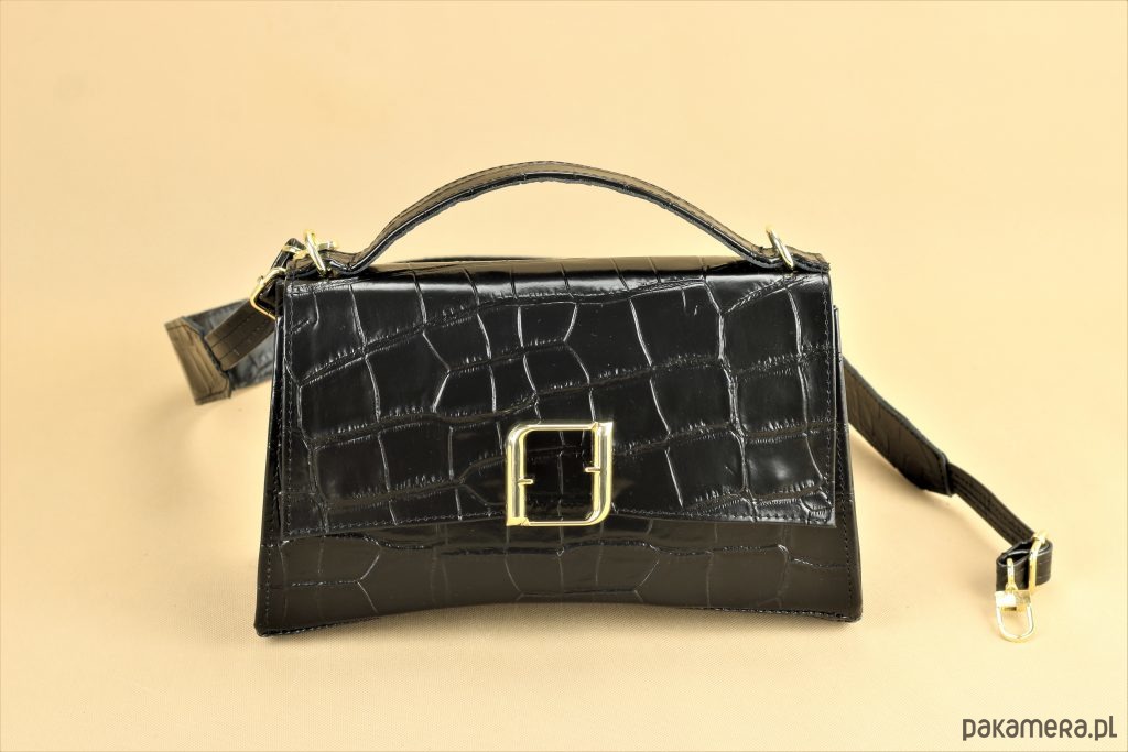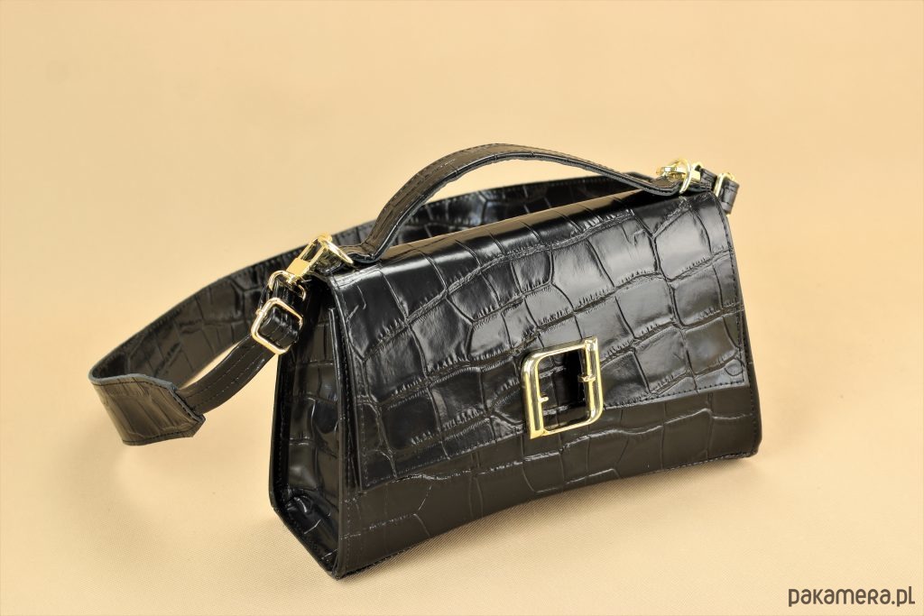 Torebka Skórzana ROSE czarny CroCo mat GOLD