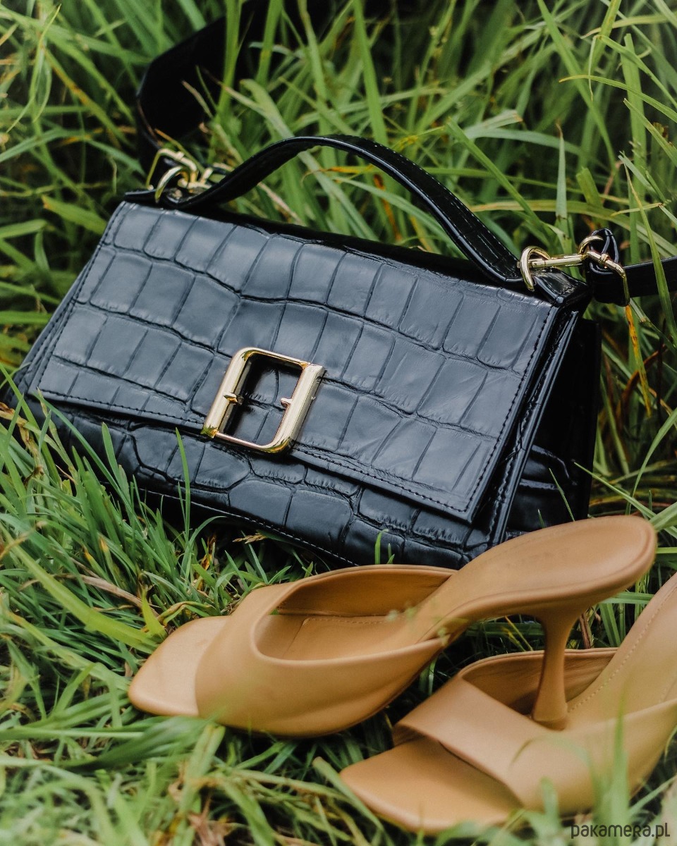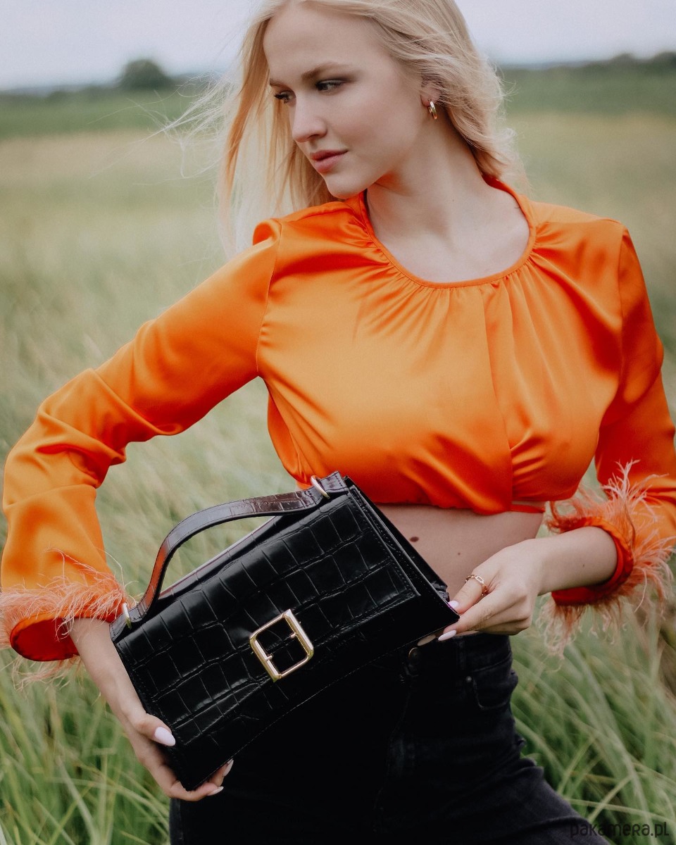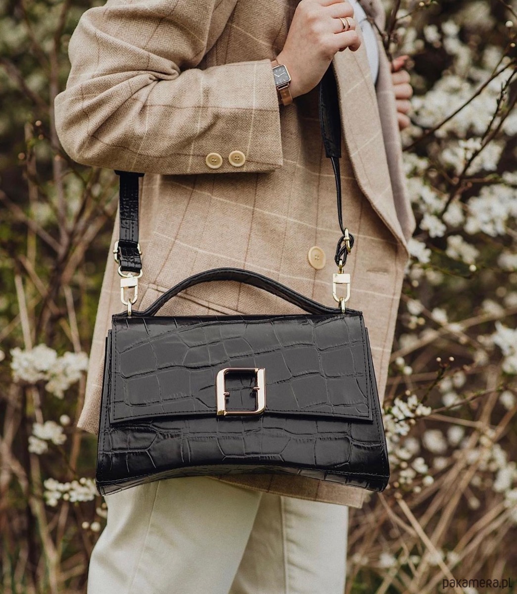 Torebka Skórzana ROSE czarny CroCo mat GOLD