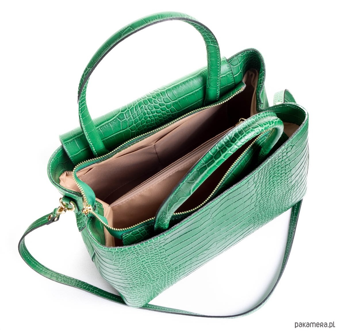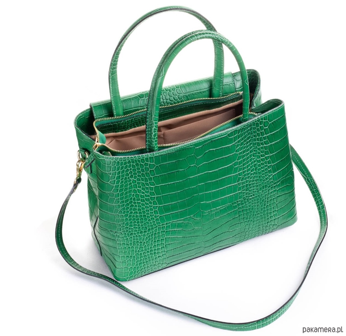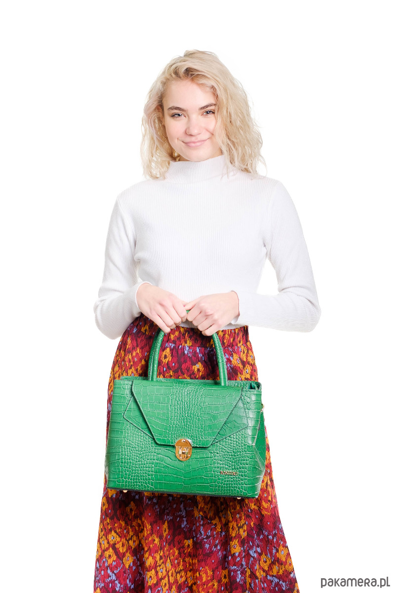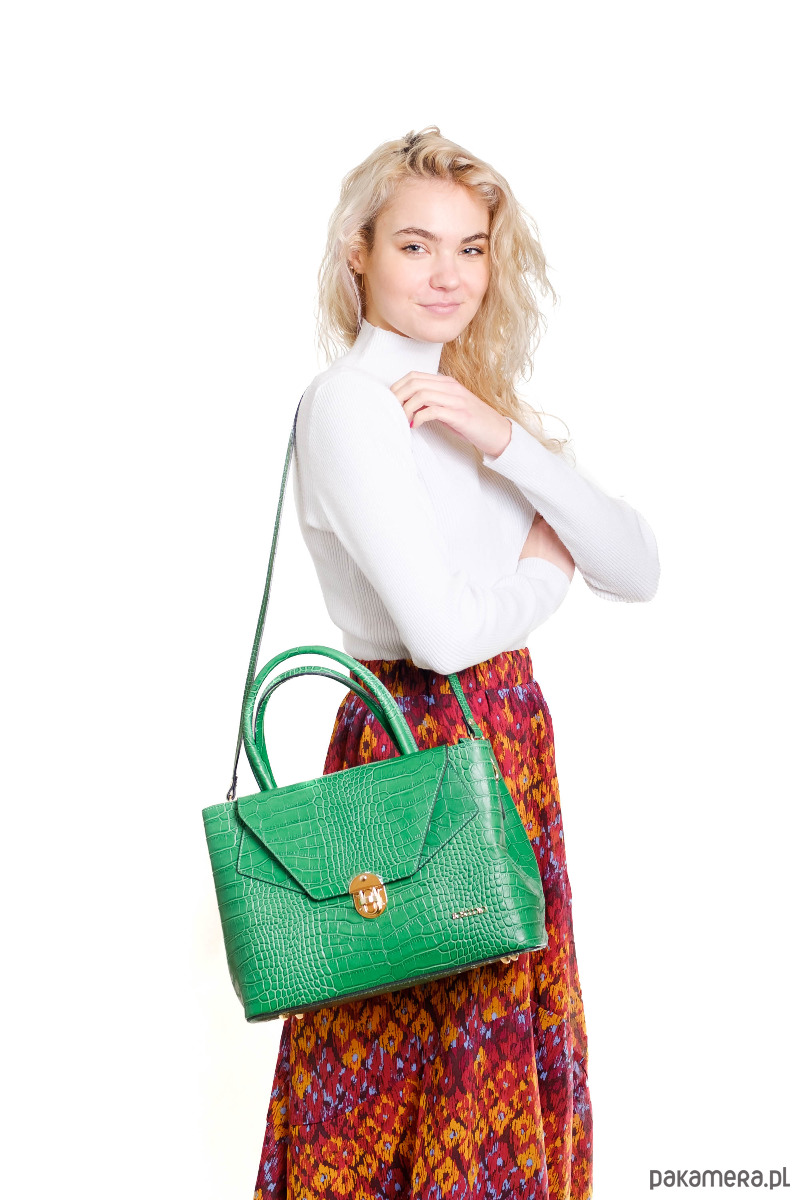 Elegancka torba ze skóry naturalnej o fakturze krokodyla, idealna do codziennych stylizacji.