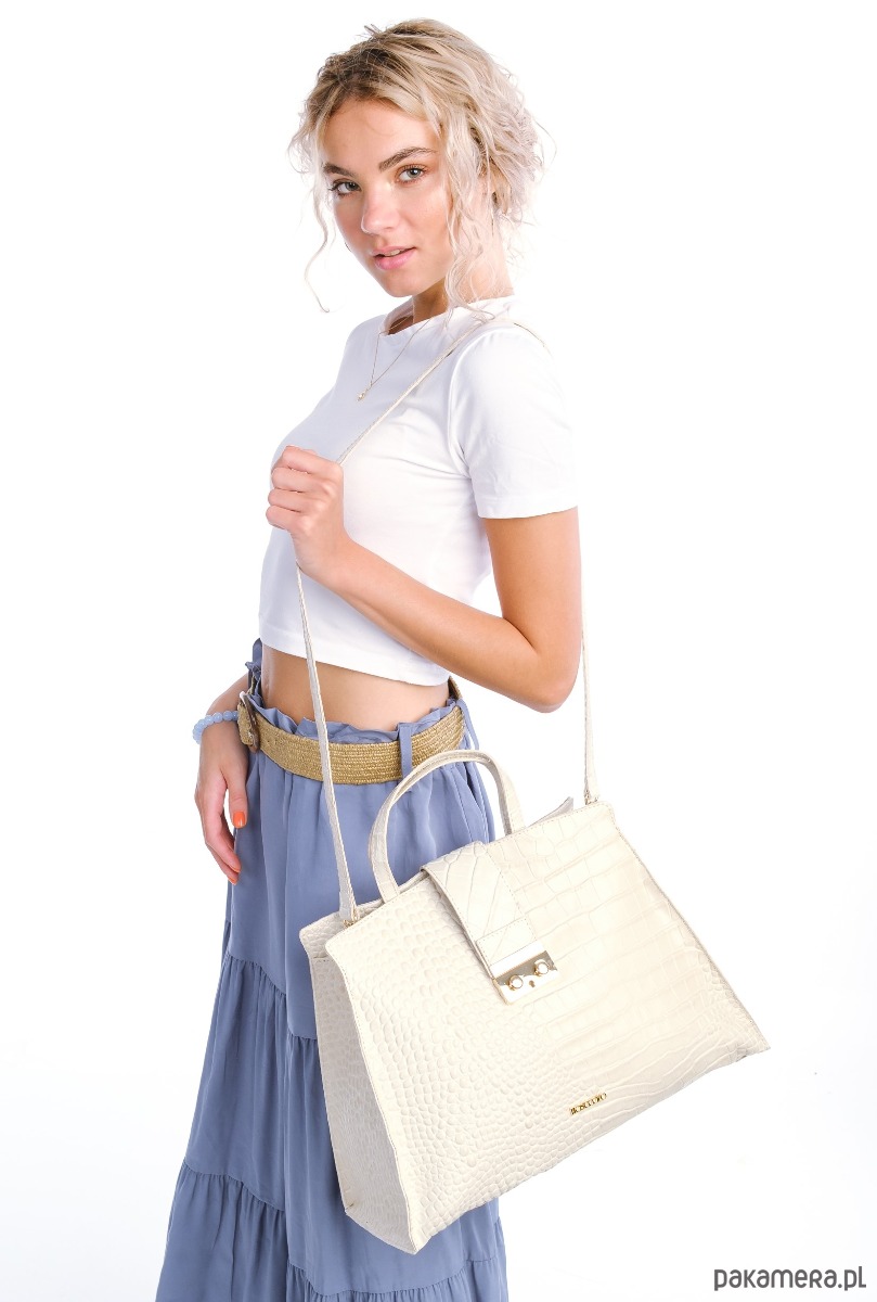 Duża elegancka torba ze skóry naturalnej, idealna do codziennych stylizacji.