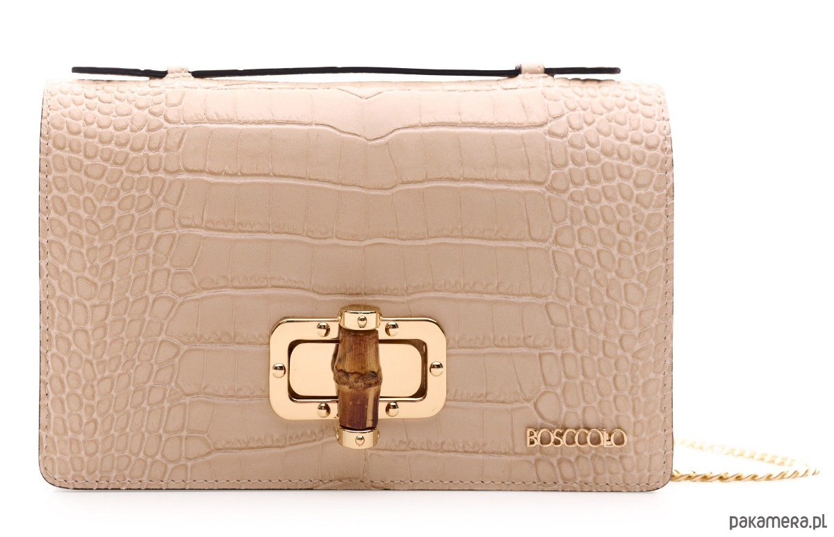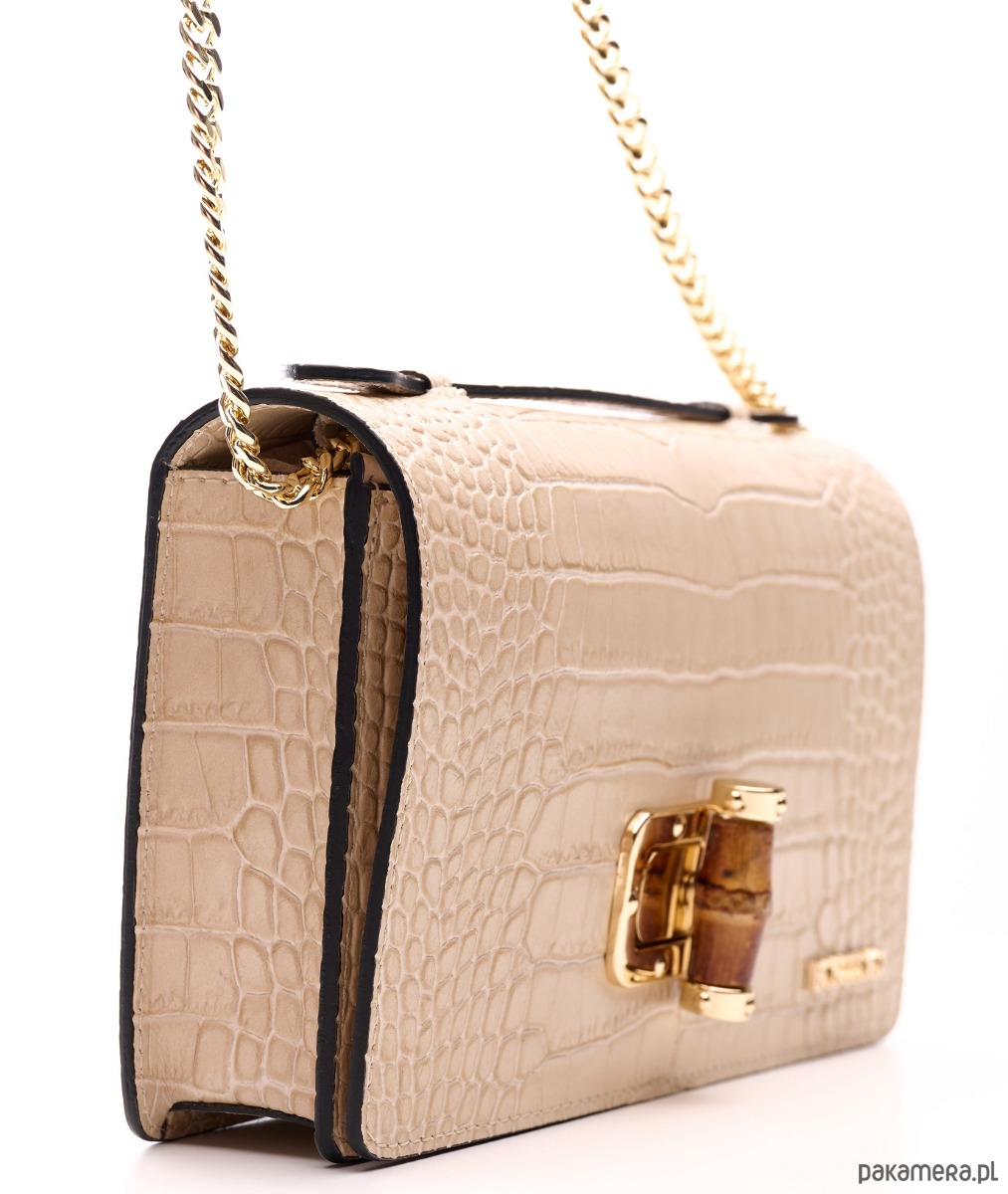 Elegancka torebka ze skóry naturalnej o fakturze krokodyla.