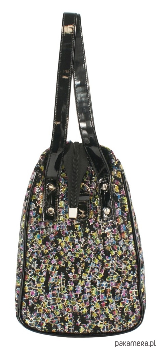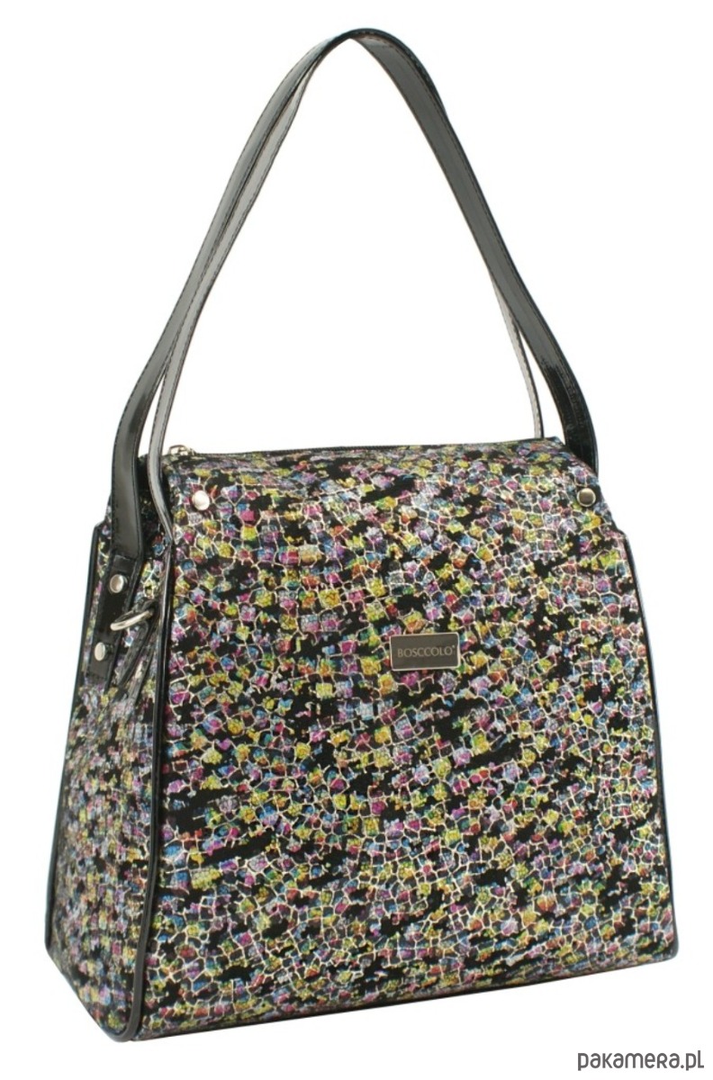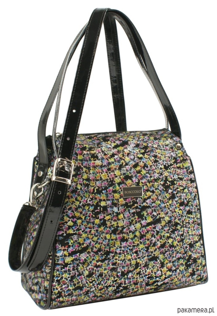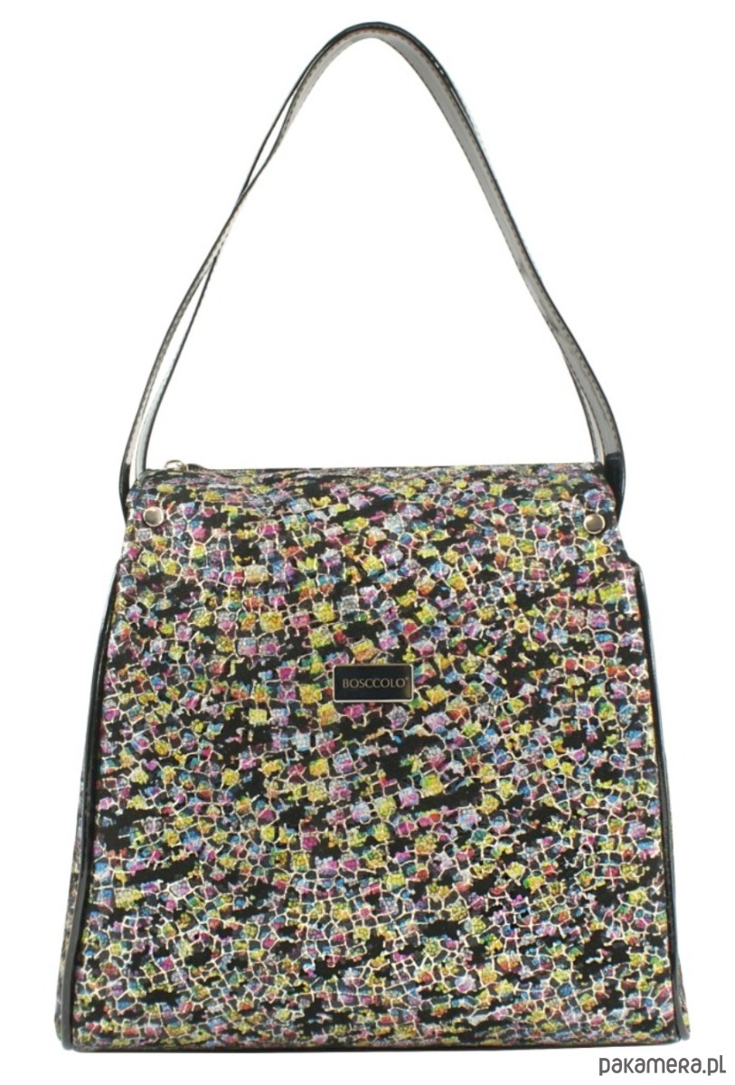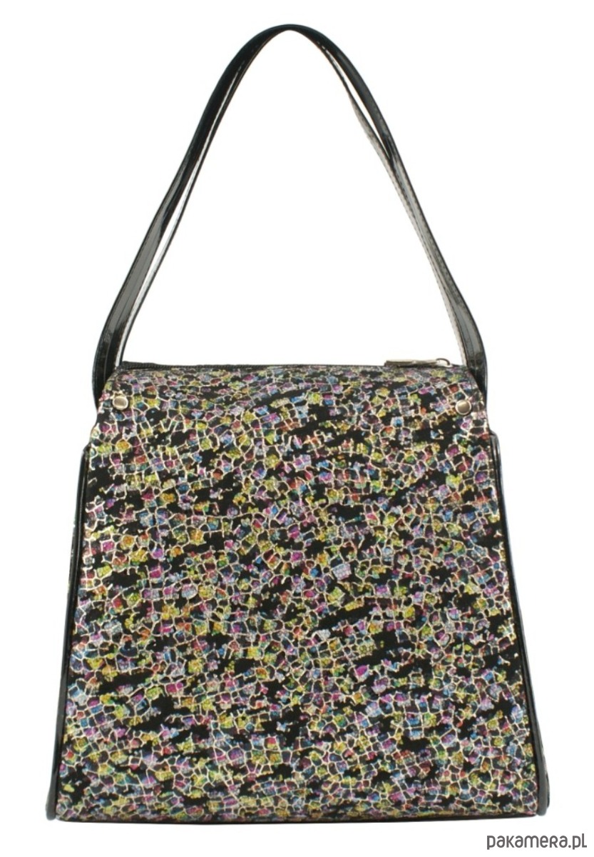 Elegancka torba ze skóry naturalnej, skóra z ozdobnym wzorem w kolorową mozaikę.