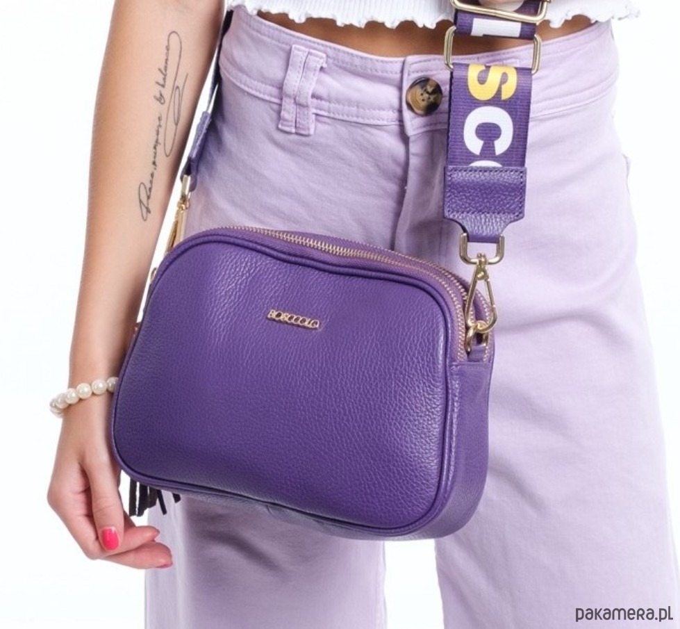 Torebka skórzana z ozdobnym paskiem -fioletowa (7125)