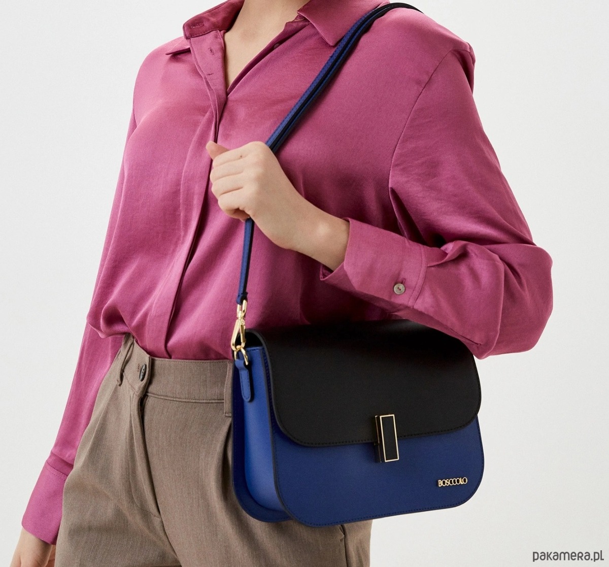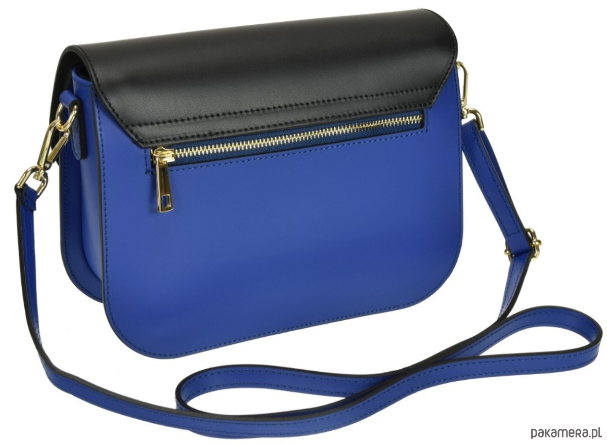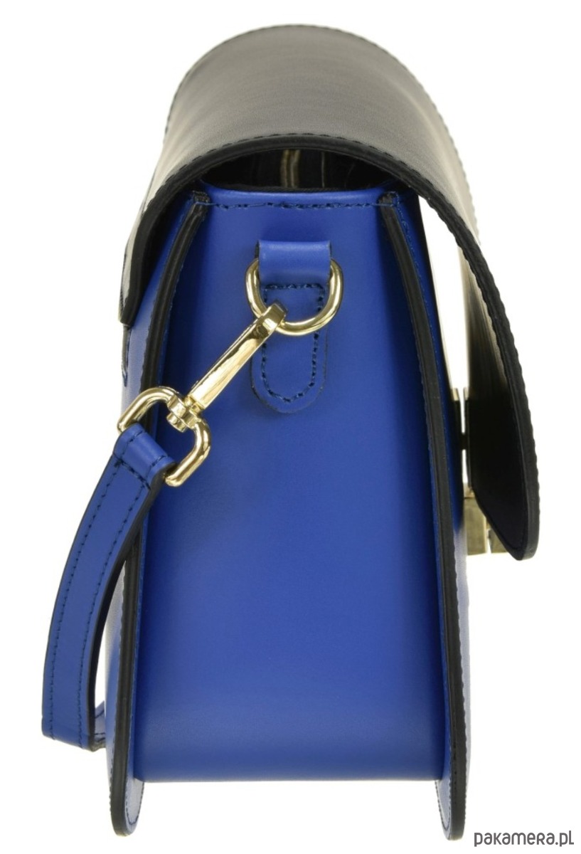 Elegancka torebka ze skóry naturalnej. Połączona z dwóch kolorów gładkiej skóry licowej, ozdobne zapięcie.