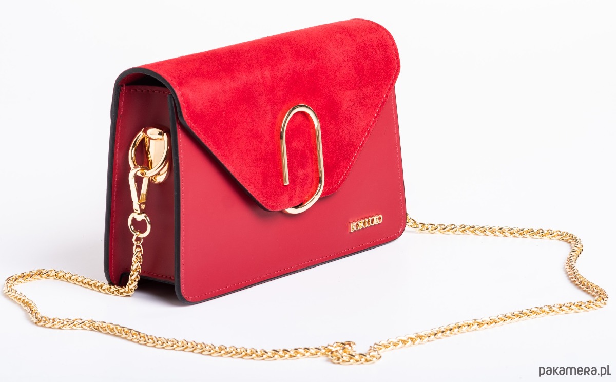 Ozdobne zamknięcie, dopinany łańcuszek do przewieszenia torebki przez ramię.
