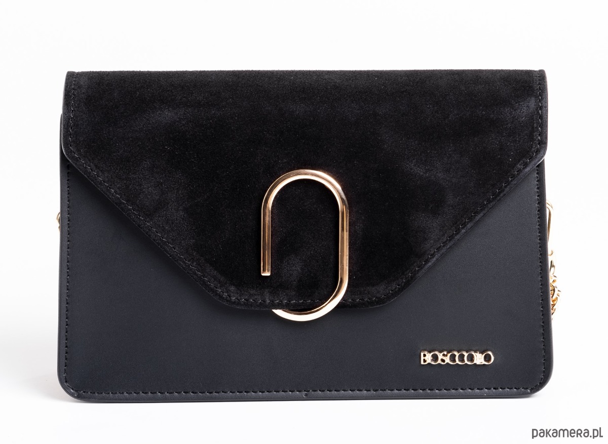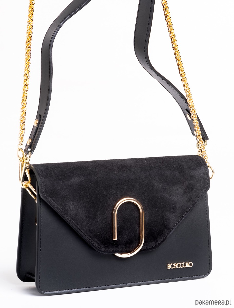 Elegancka torebka ze skóry naturalnej, łączonej, lico + zamszowa klapka.