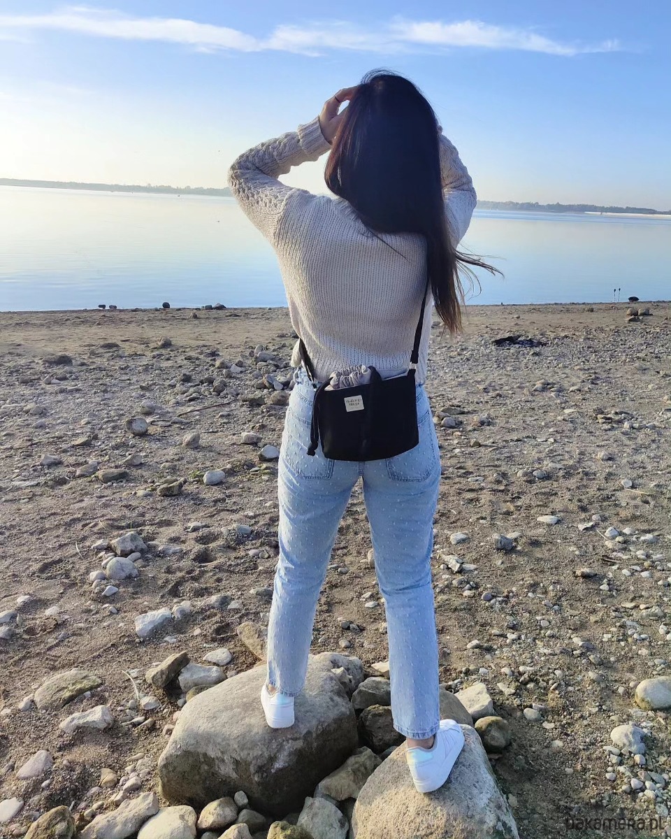 Sprawdzi się zarówno w stylizacji jeansy, trampki jak i sukienka, spódnica.