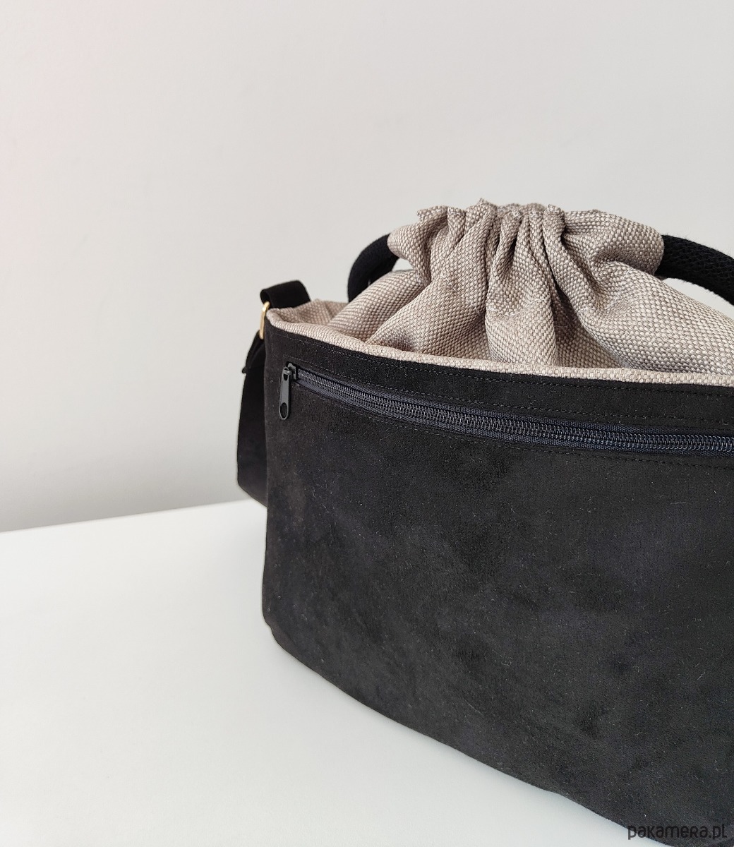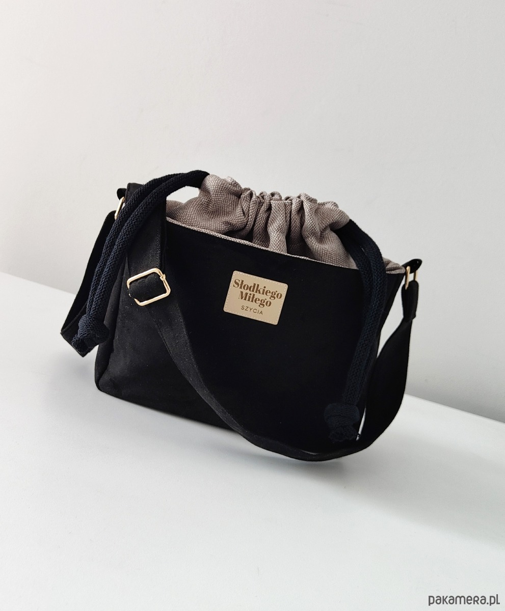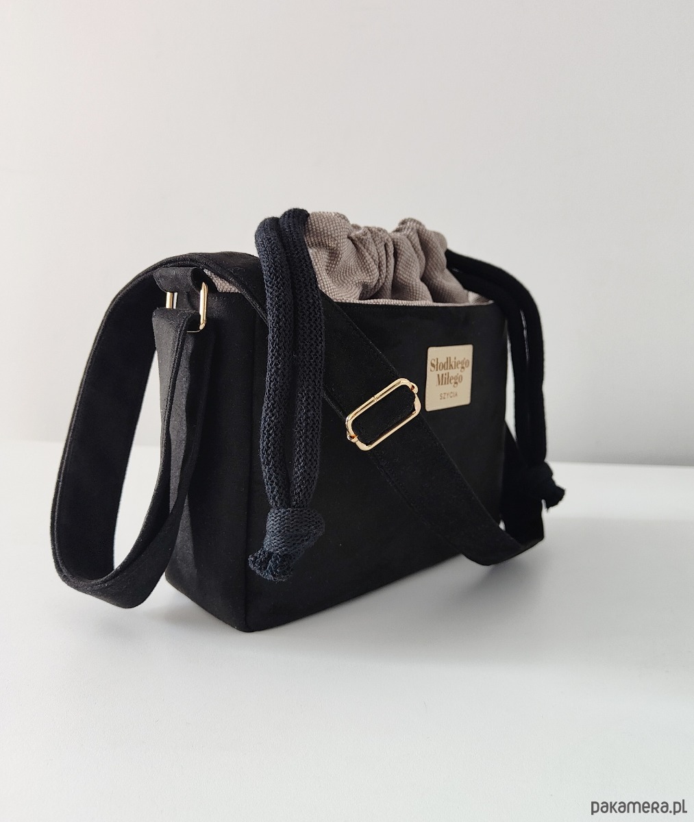 Torebka SOFIA Black-mała, czarna torebka z kominem z nubuku