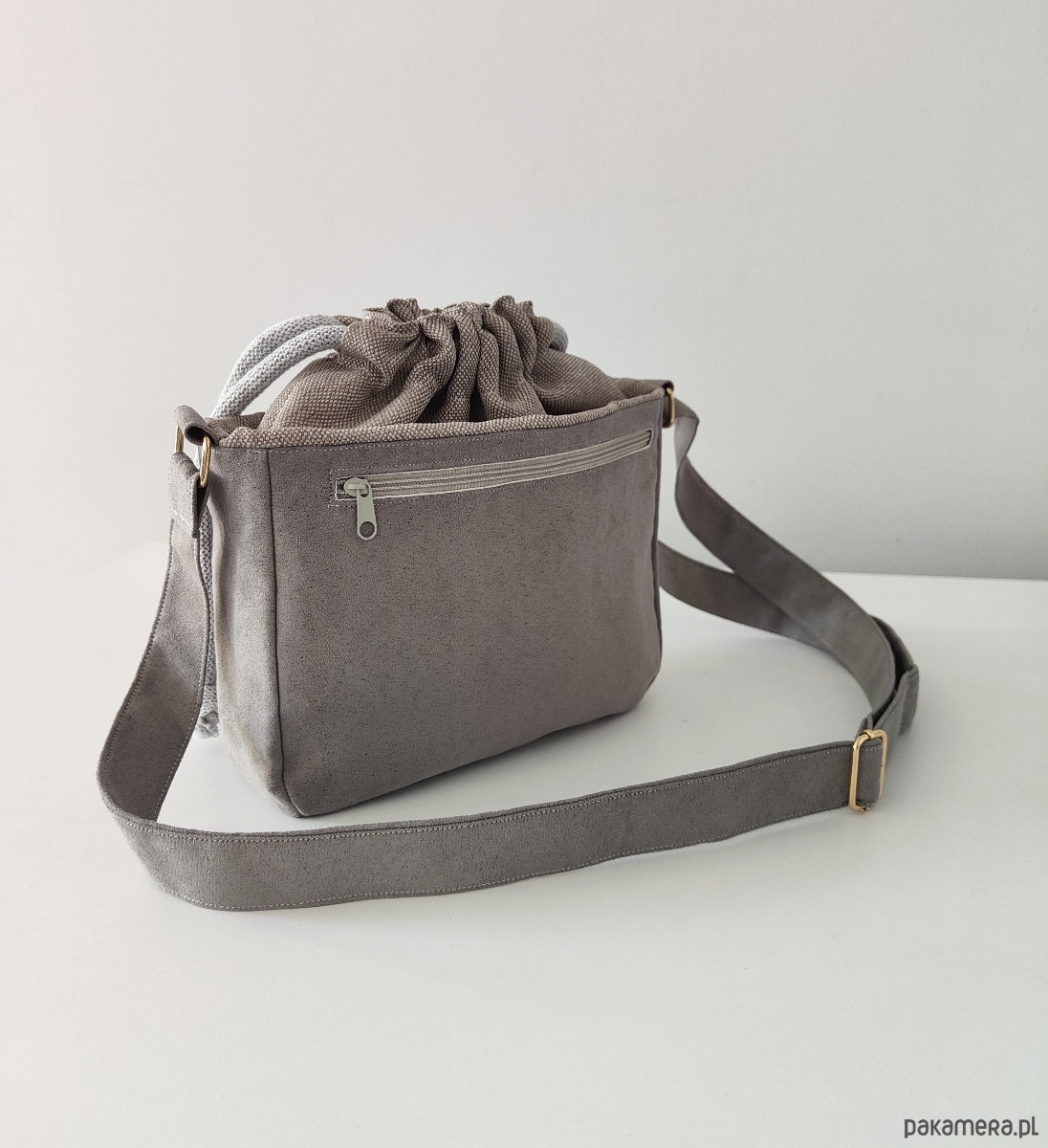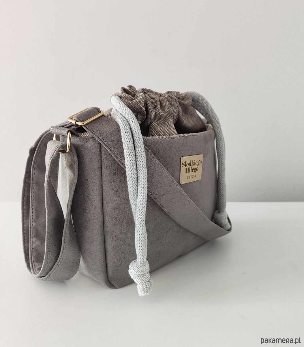Torebka SOFIA Grey-mała, szara torebka z kominem z nubuku