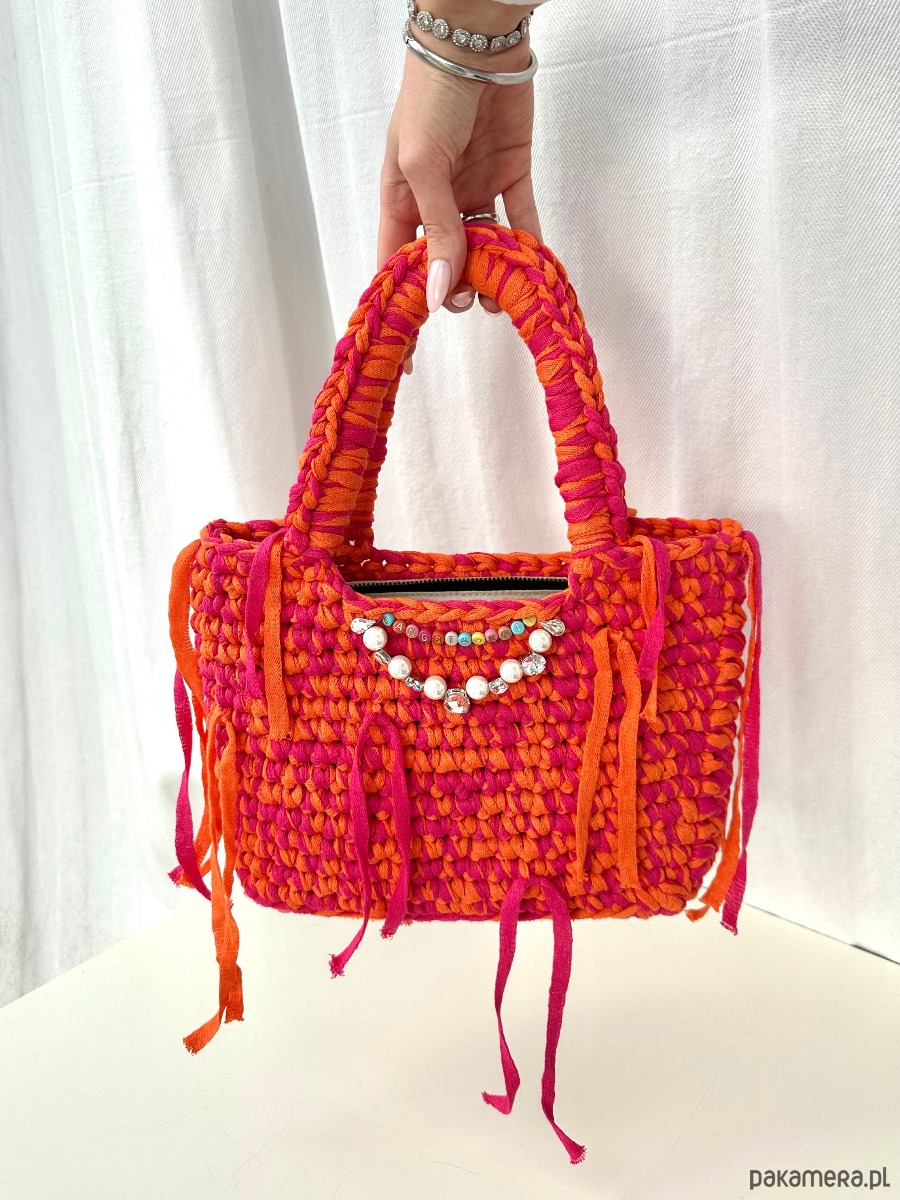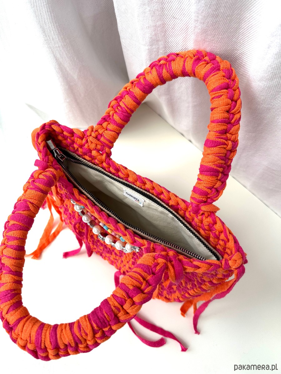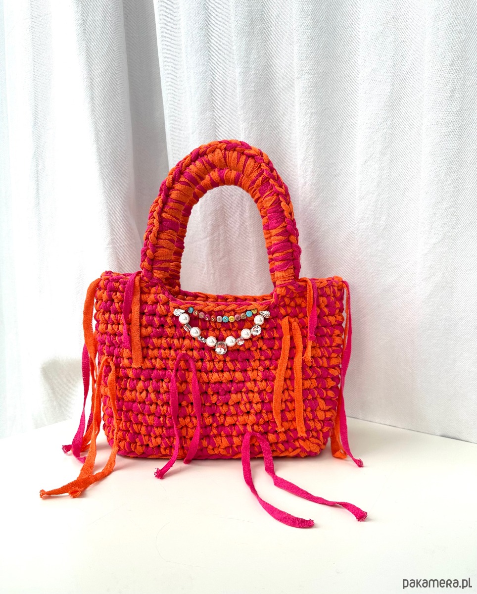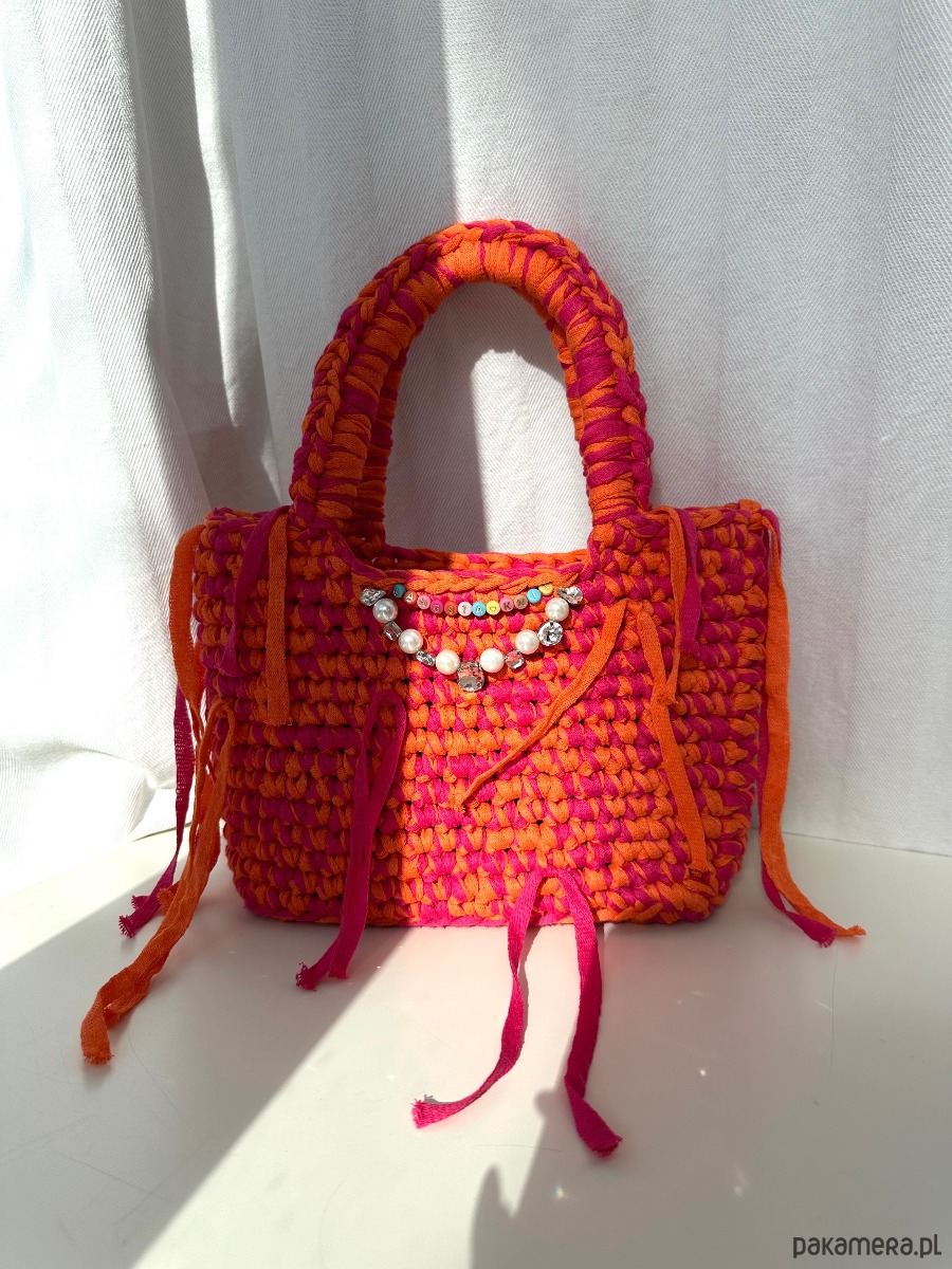 Sunset Muse to torebka inspirowana kolorami zachodzącego słońca, intensywnym różem i soczystą pomarańczą, które przyciągają spojrzenia i nadają stylizacji charakteru. Każdy egzemplarz powstaje ręcznie, co czyni go unikalnym i niepowtarzalnym.