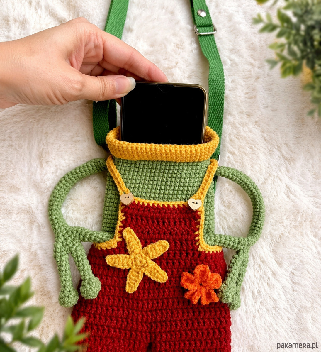 Ręcznie robiona torebka na telefon w kształcie uroczej żabki 💚