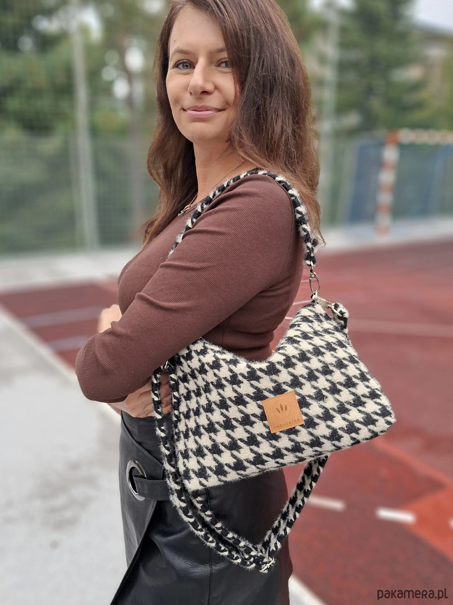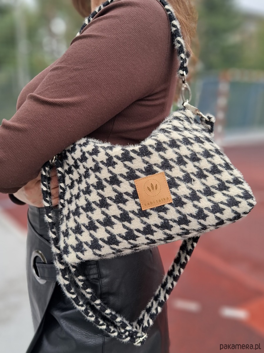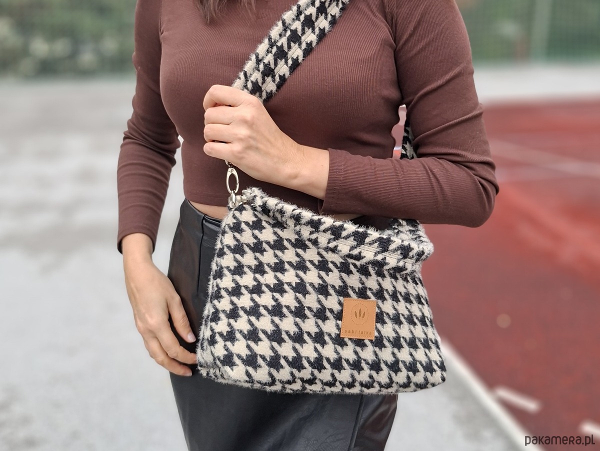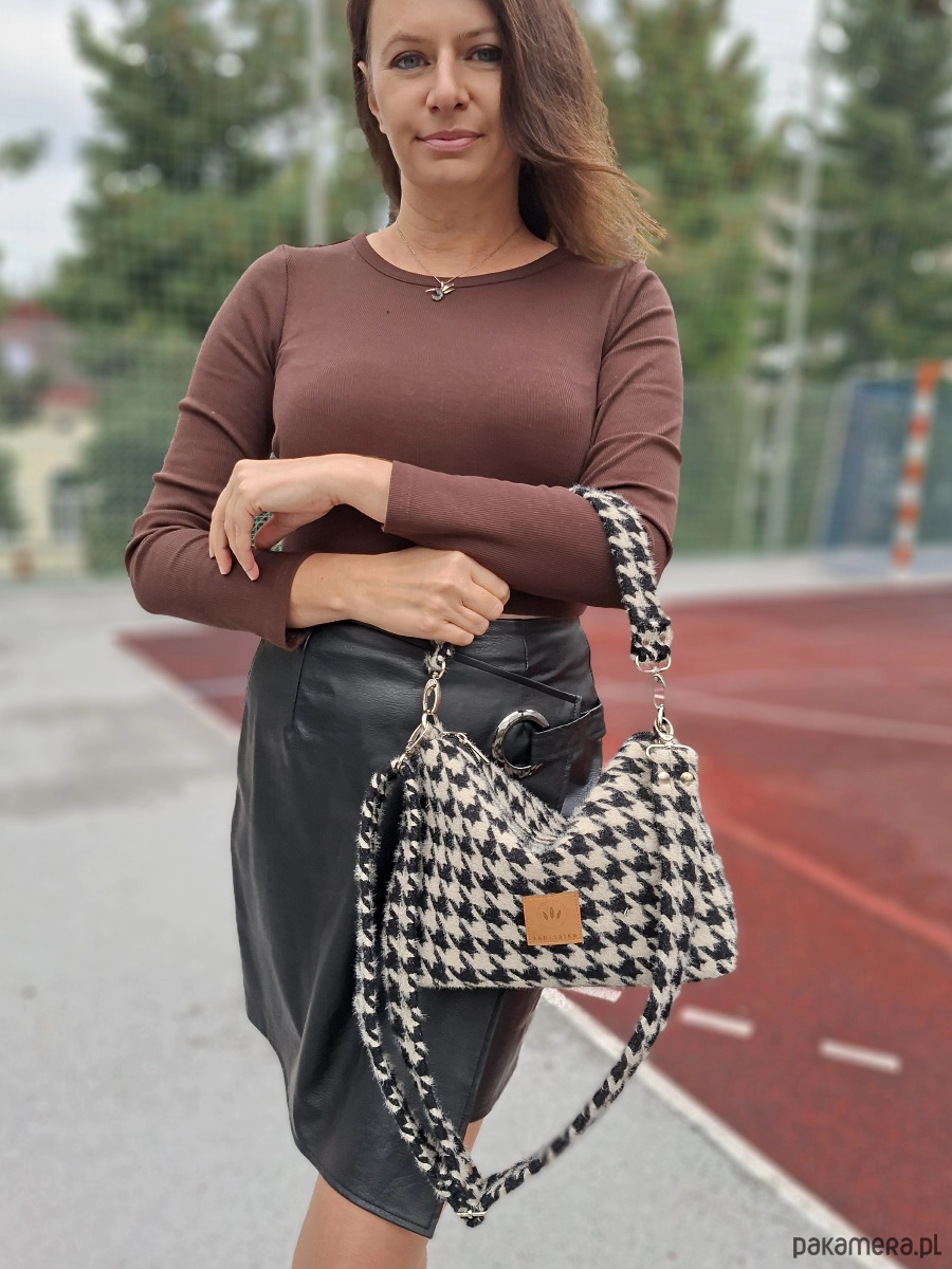 Torebka w pepitkę z puchatej tkaniny Beżowo-Czarna