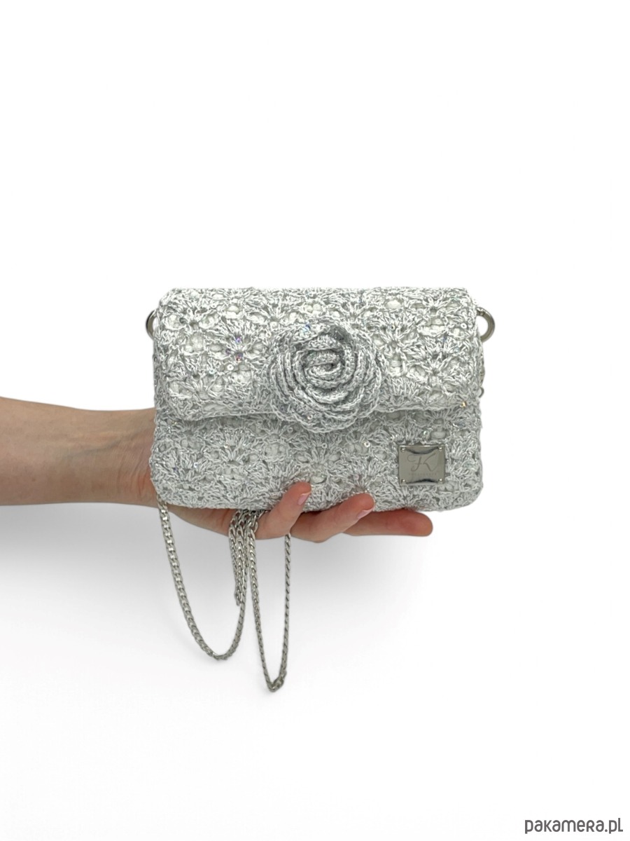 Zamykana na magnetyczną klapkę, ozdobioną ręcznie dzierganą różą, będzie nie tylko praktycznym dodatkiem, ale też przepiękną ozdobą Twojej stylizacji – czy to do klasycznej sukni, czy nowoczesnego garnituru.