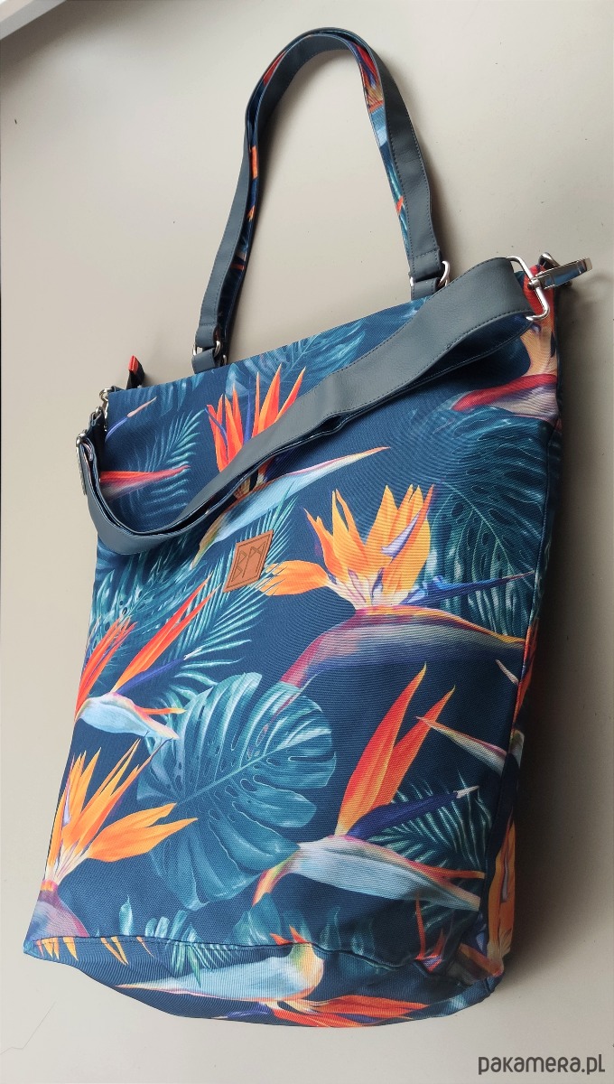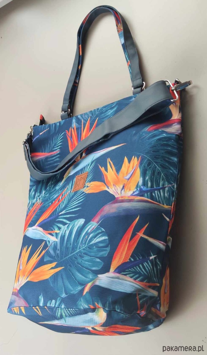 Torba na ramię zamykana na zamek, wykonana z wodoodpornej tkaniny i eko skóry. Wewnątrz wodoodporna podszewka zaopatrzona w pojemne zamykane kieszenie. Do torebki dołączony jest długi pasek mocowany przy pomocy karabinczykow, więc można ja nosić przez ramie... Wymiary torebki 45/45cm. Pasek regulowany 50-100cm.