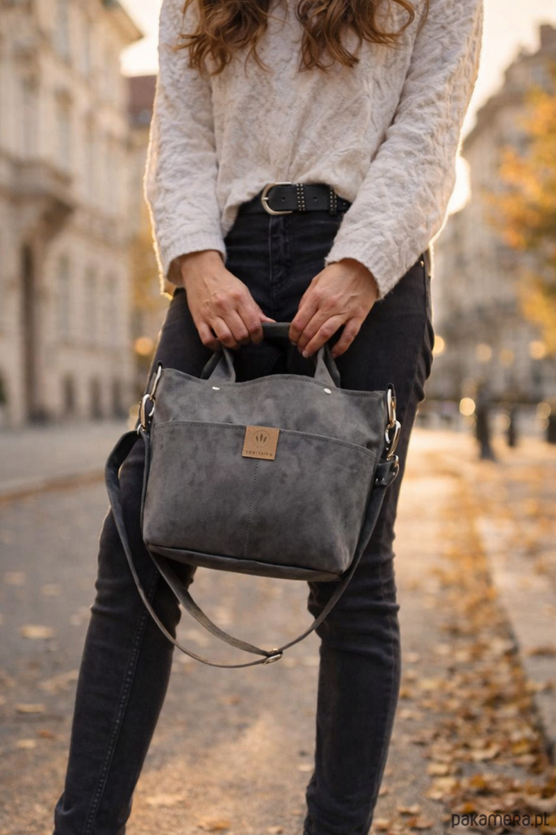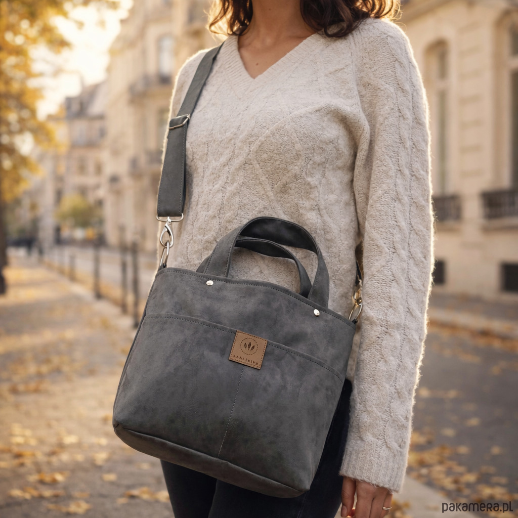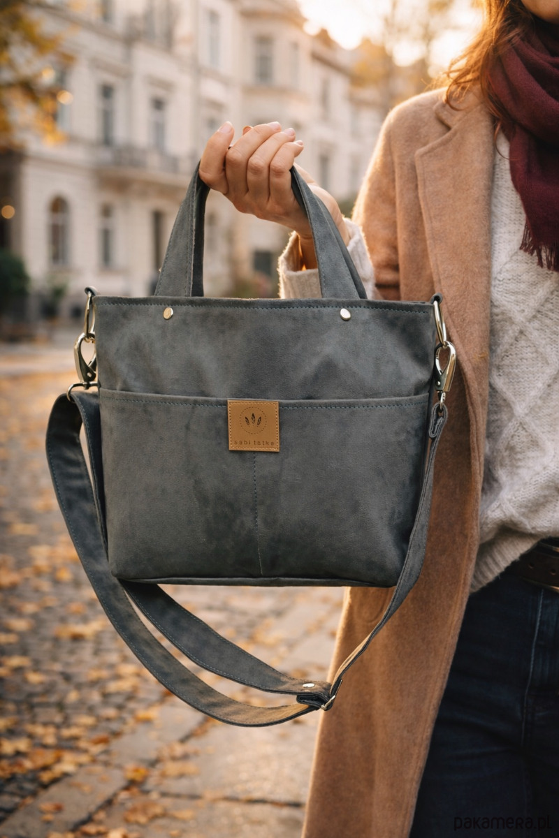 Dzięki krótkim rączkom można ją trzymać w dłoni lub nosić na skos jak listonoszkę.