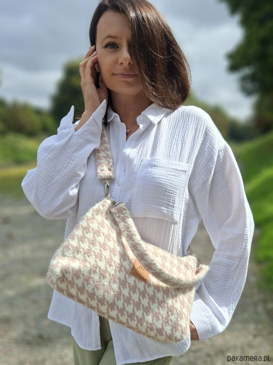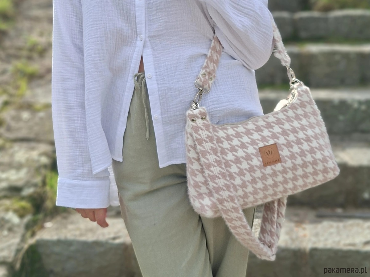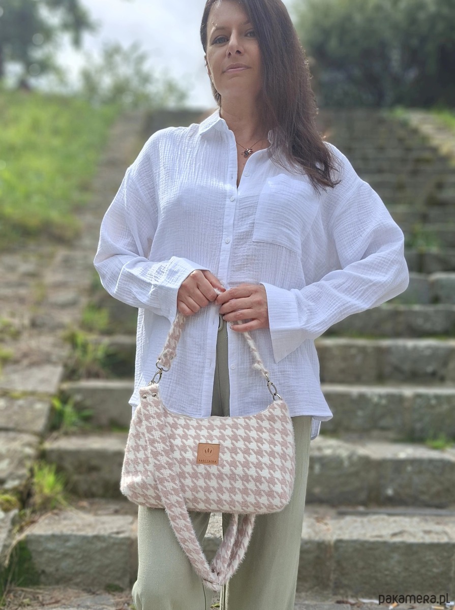 Torebka z puchatej tkaniny w pepitkę Różowa