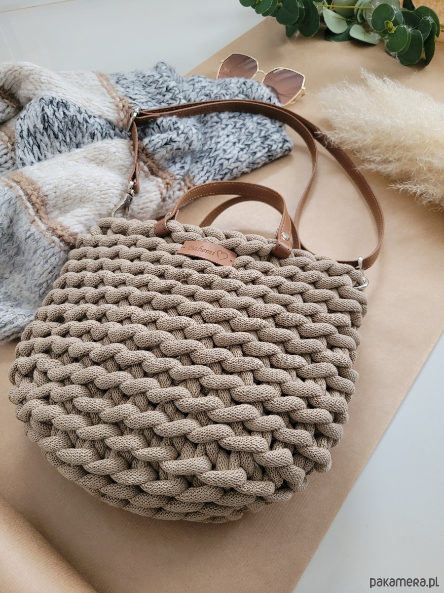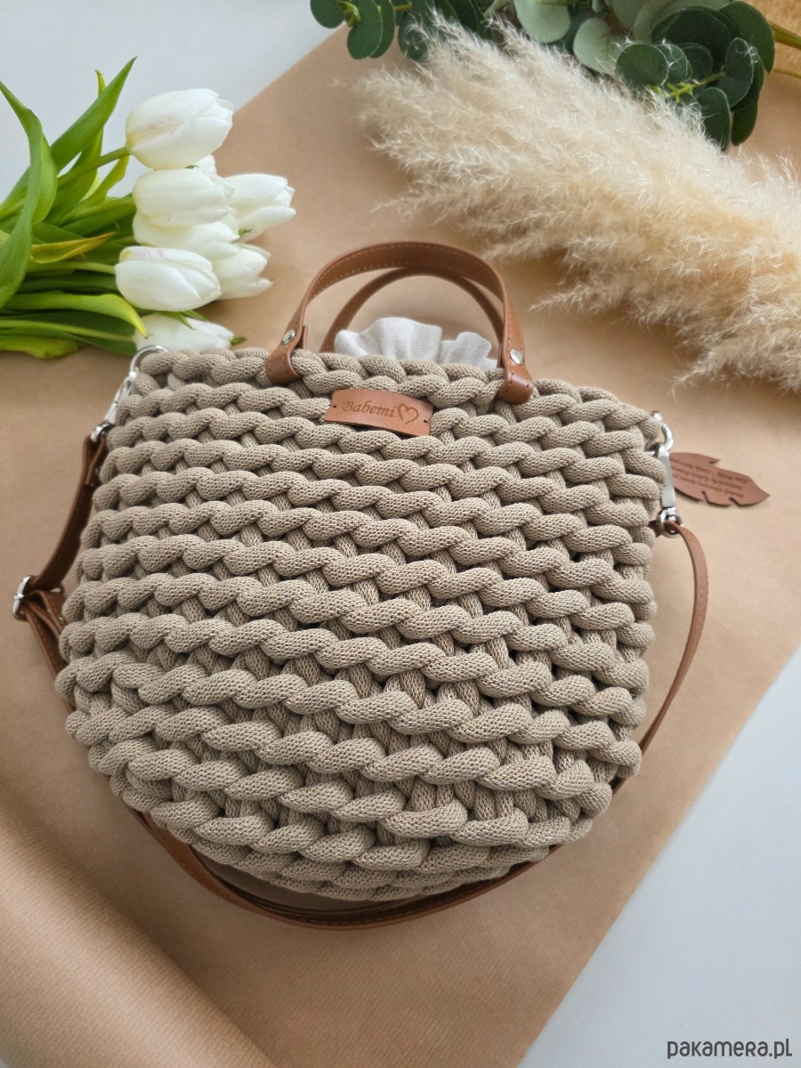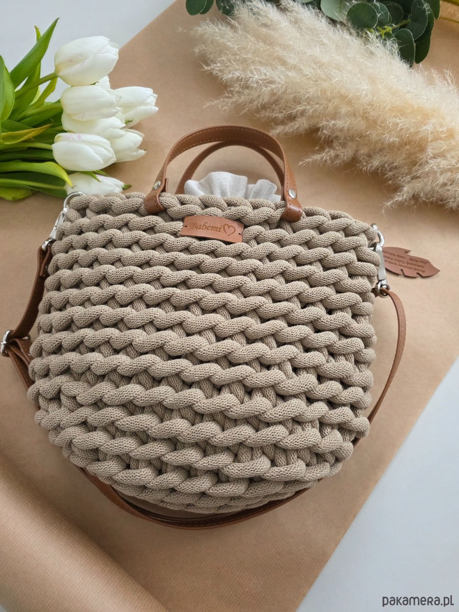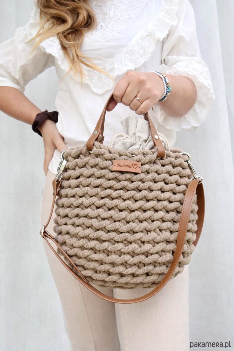 Odkryj wyjątkowy urok ręcznie robionej torebki szydełkowej Babemi w piaskowym odcieniu. Każdy splot powstał z grubego, wysokiej jakości sznurka, co nadaje torbie niepowtarzalną strukturę i trwałość.
