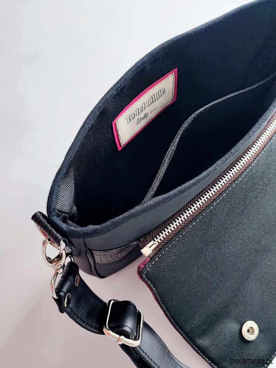 Model ten mieści najpotrzebniejsze rzeczy, takie jak telefon, mały portfel, klucze, drobne kosmetyki lub mały notes. Posiada otwarte kieszonki w środku i na zewnątrz. A dzięki regulowanemu paskowi możesz ją nosić na ukos lub po skróceniu paska pod pachą, a nawet na biodrze.