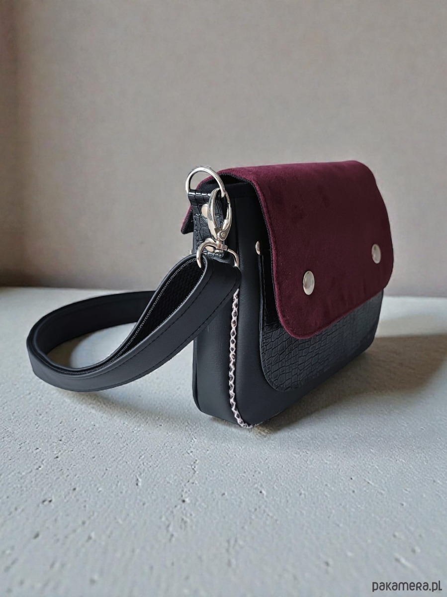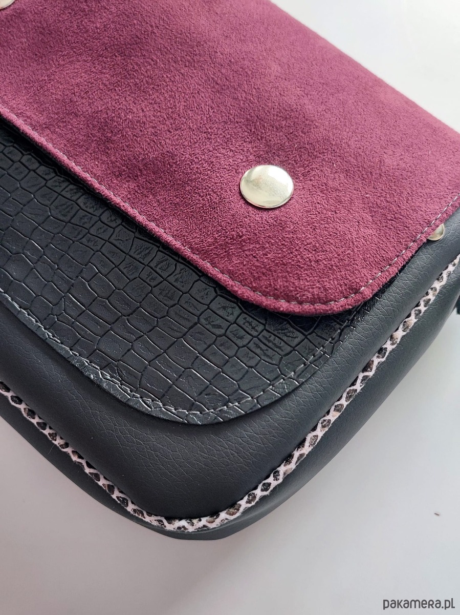 Nieduża torebka na regulowanym pasku z możliwością personalizacji wg okazji lub własnych upodobań. Jej wygląd możesz łatwo zmienić odpinając klapkę z tyłu torebki i umieszczając na jej miejsce inną, kolorową lub jednolitą. Fason torebki jest klasyczny i ponadczasowy, jednak dzięki możliwości wymiany klapki staje się oryginalny i można z nim poszaleć.