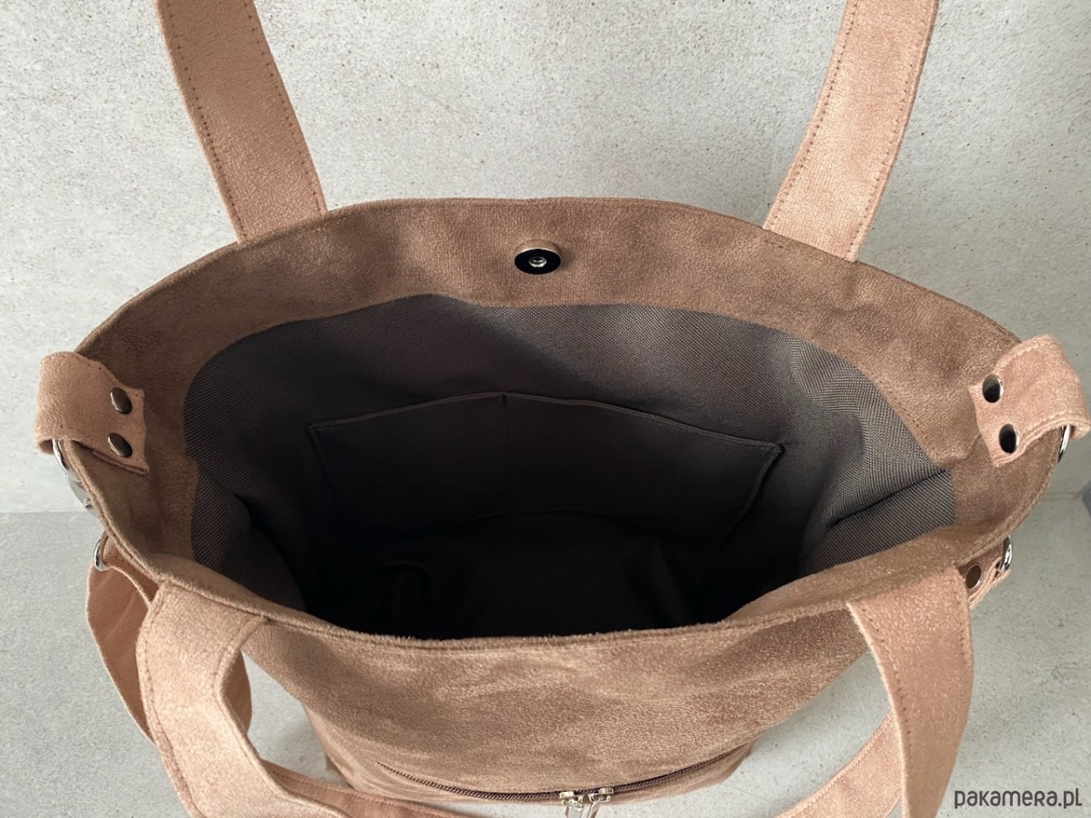 Torba wykonana z syntetycznego zamszu.