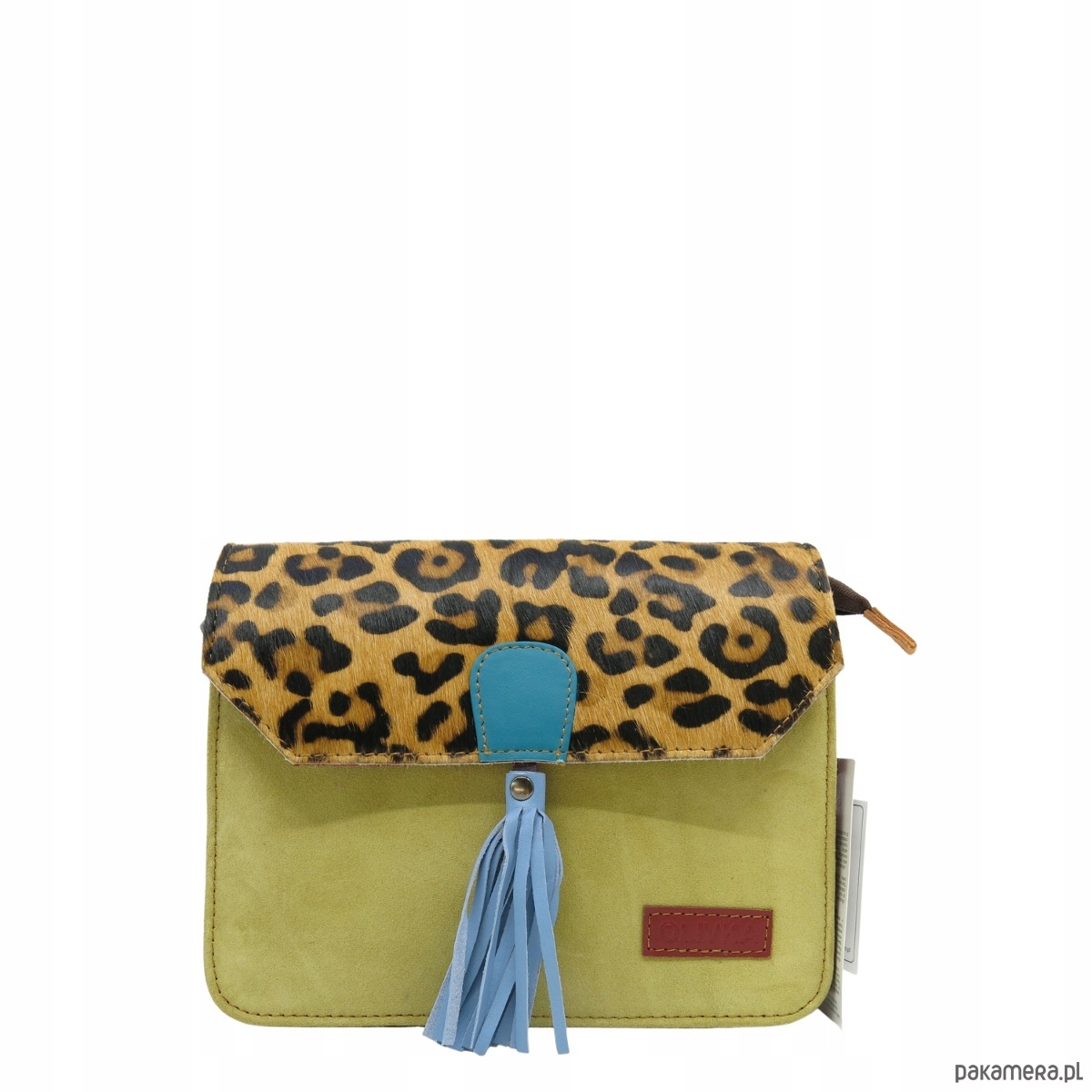 Torebka zamszowa, elegancka, skórzana, zamsz, ozdobny chwost eko OLIVKA