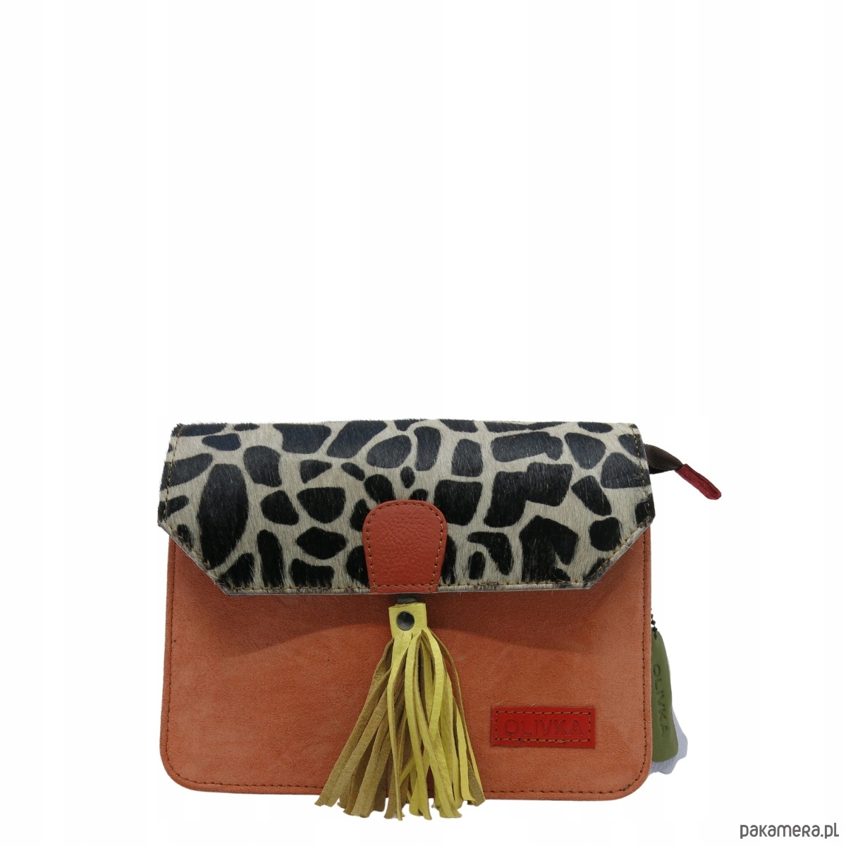 Torebka zamszowa, elegancka, skórzana, zamsz, ozdobny chwost eko OLIVKA