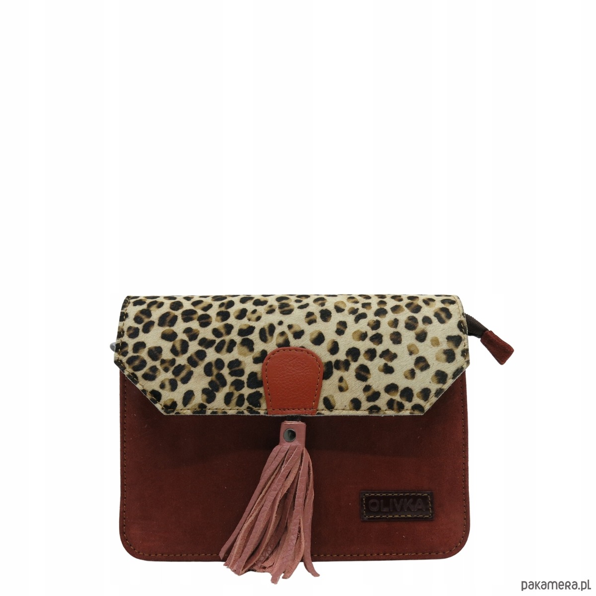 Torebka zamszowa, elegancka, skórzana, zamsz, ozdobny chwost eko OLIVKA