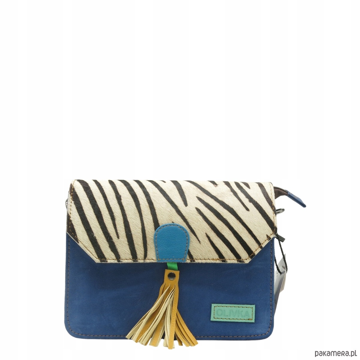 Torebka zamszowa, elegancka, skórzana, zamsz, ozdobny chwost eko OLIVKA