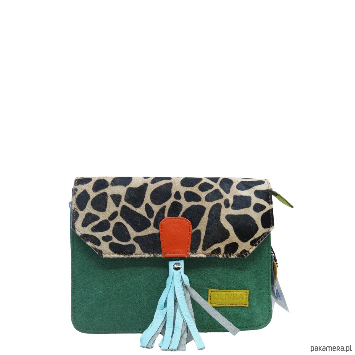 Torebka zamszowa, elegancka, skórzana, zamsz, ozdobny chwost eko OLIVKA