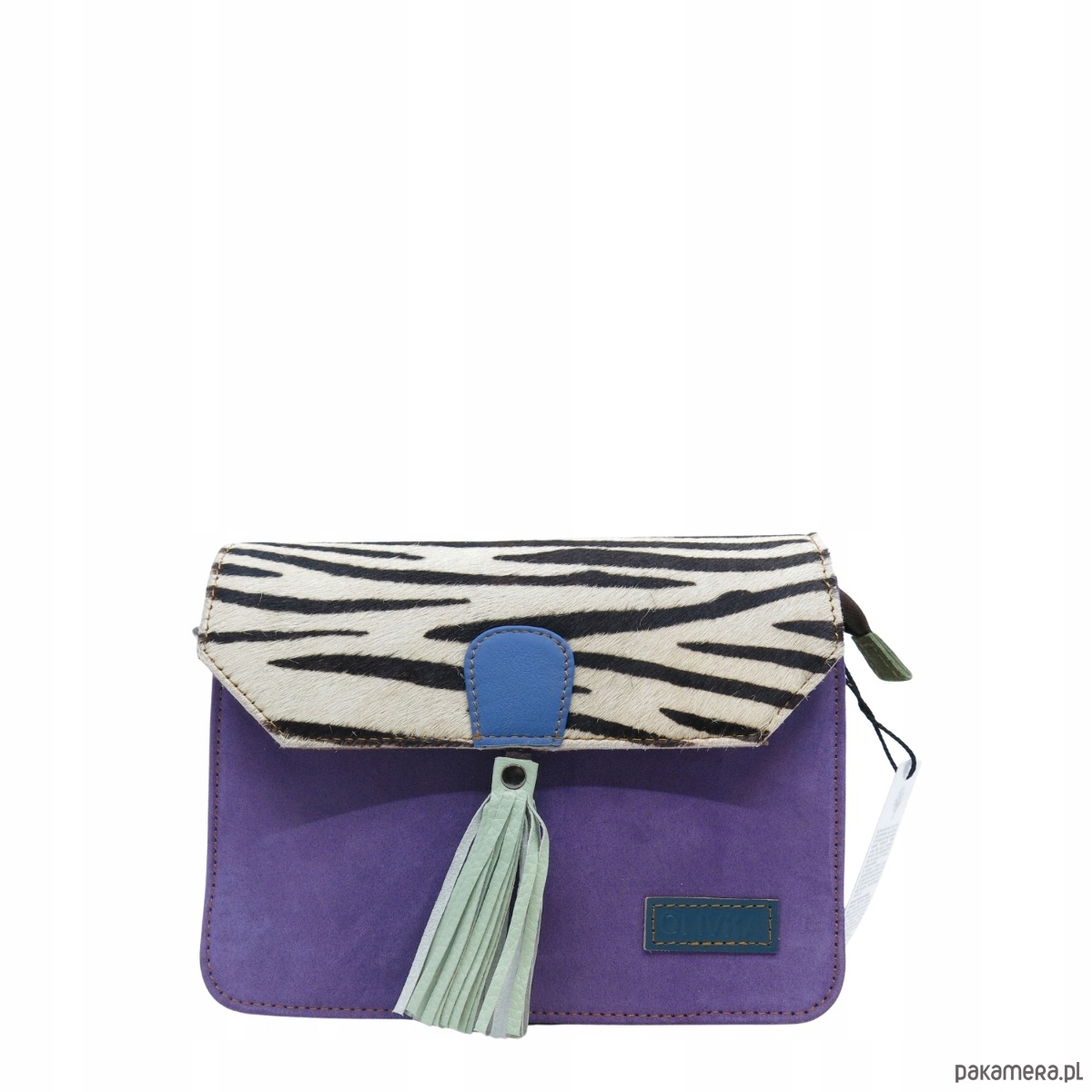 Torebka zamszowa, elegancka, skórzana, zamsz, ozdobny chwost eko OLIVKA