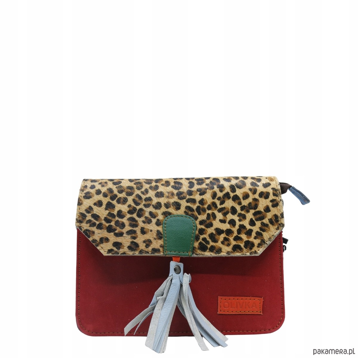 Torebka zamszowa, elegancka, skórzana, zamsz, ozdobny chwost eko OLIVKA