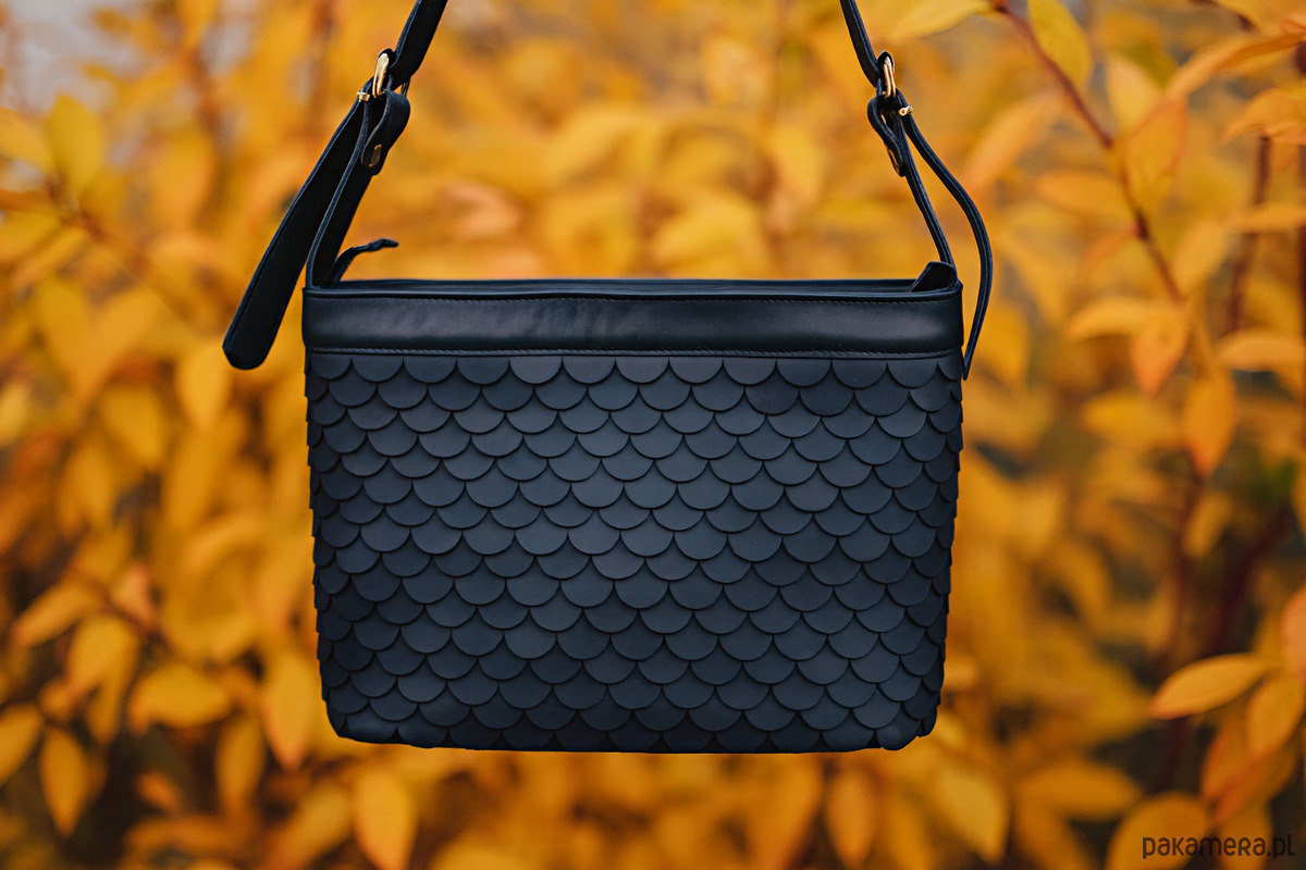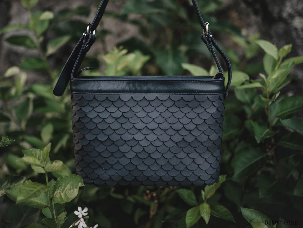 Torebka w rybią łuskę wykonana z wysokiej jakości skóry naturalnej garbowanej roślinnie, która wykonana została bez użycia szkodliwego chromu.